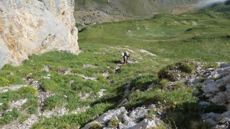 Nous avons improvisé lors de la descente un itinéraire différent que celui suivi à la montée. Je le déconseille si le parcours n'est pas suivi avec un GPS et le fichier enregistré. En cas de brouillard suivre scrupuleusement le chemin de la montée.