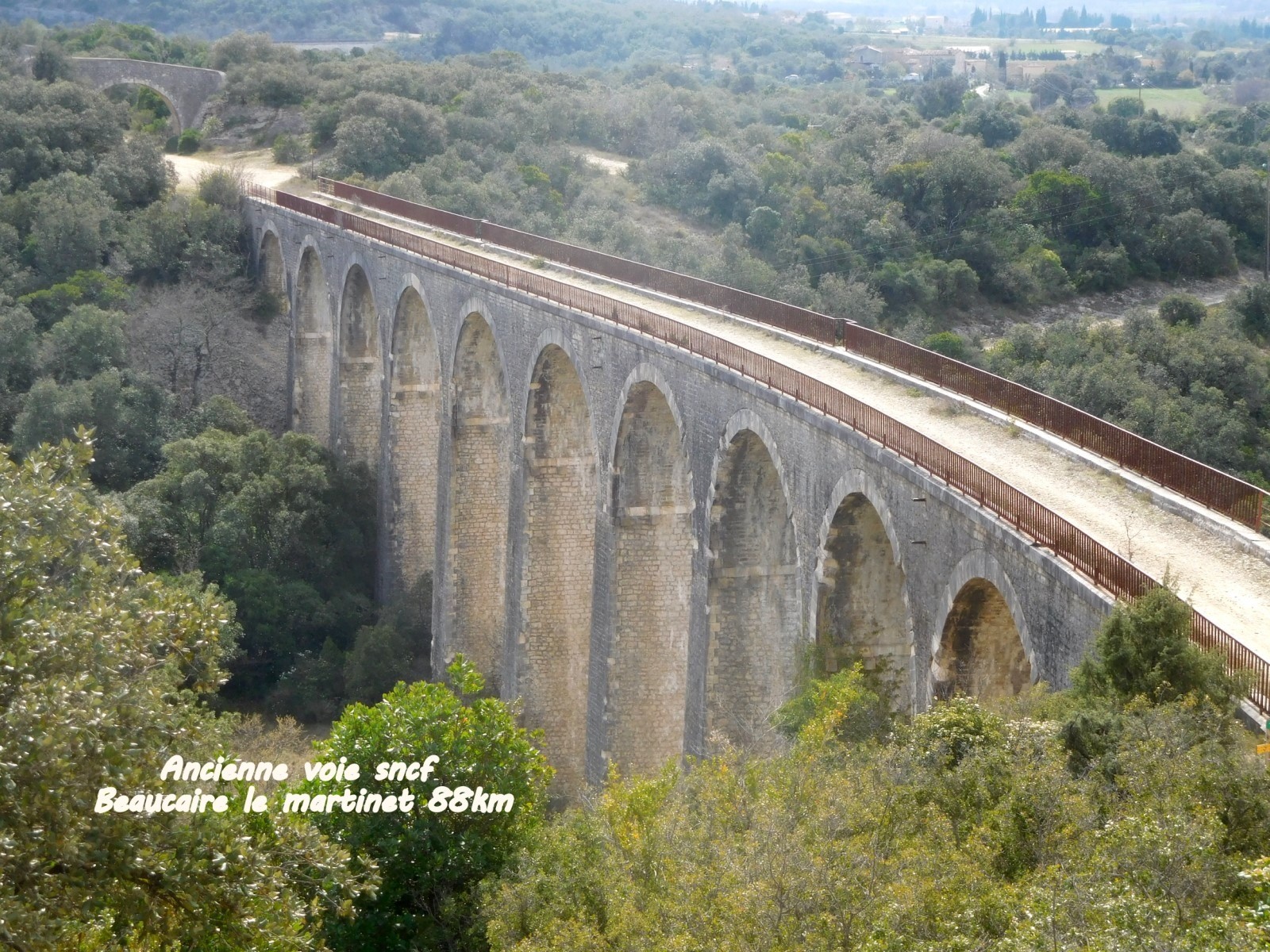 A voir Grotte et baume des Camisard le hameau de Vacquières, vous cheminerez le long de l'ancienne voie SNCF qui reliait Beaucaire au Martinet 88km avec ses viaducs et ponts. Puis le parcours vous conduit après un passage ou le sécateur peut être très utile car pas mal de végétation. Mais vous ne regretterez pas ce sentier un peu perdu qui vous permet de rejoindre l'agréable ruisseau des troubadours . coordonnée UTM pour le début de ce sentier 31T X=599734 Y=4882379 voir sur la carte