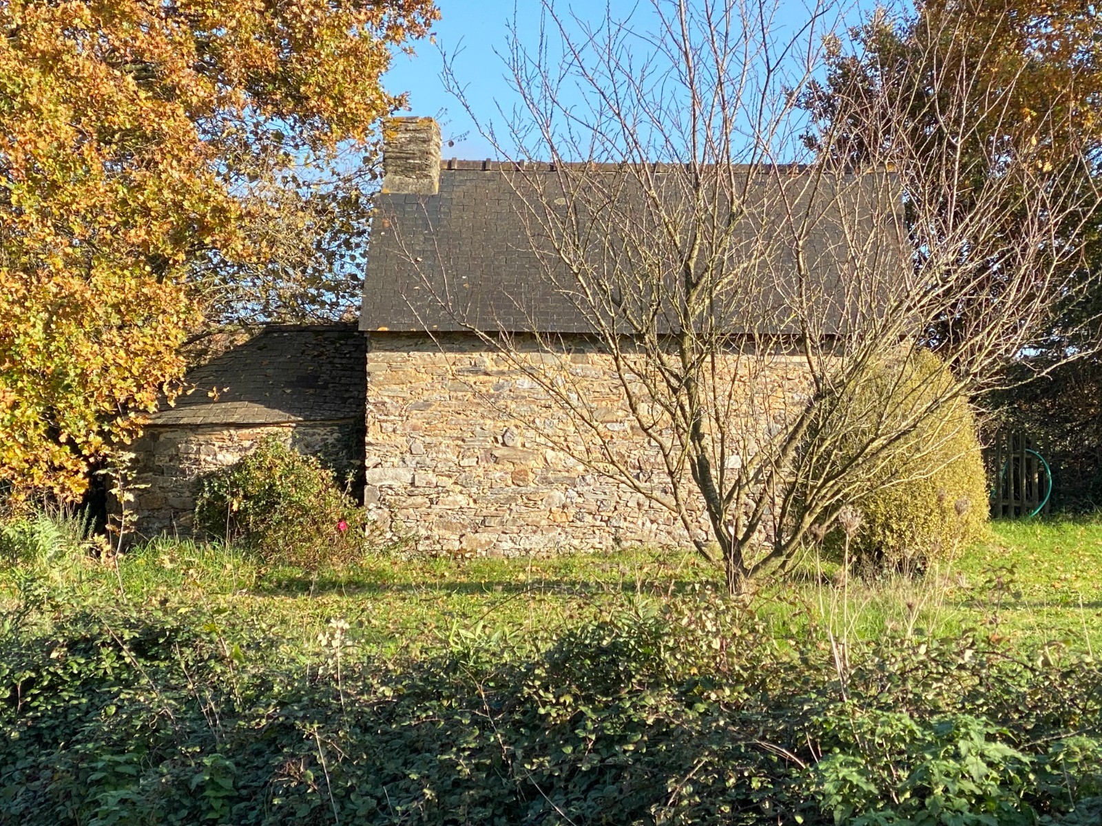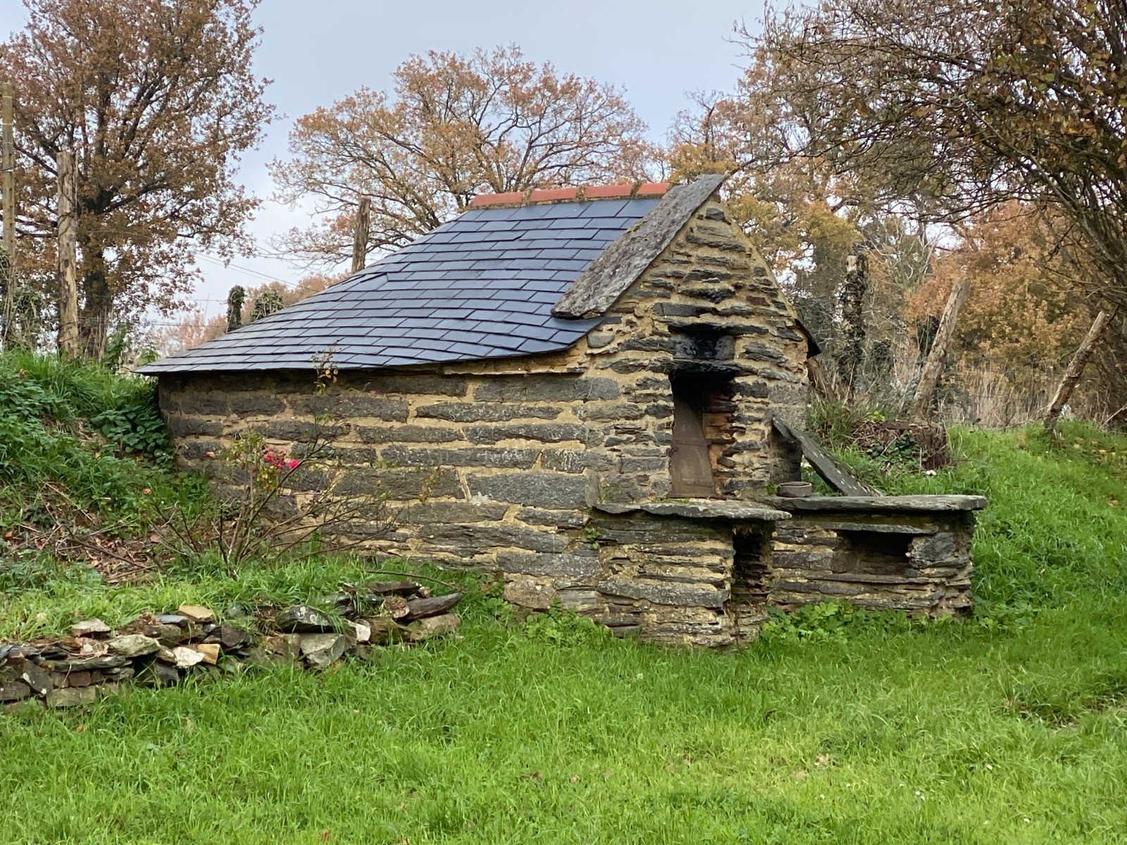 Au gré des chemins vous verrez la fameuse “pierre bleue” qui est la pierre du pays à savoir le schiste. ( photos 4 à 6 & 13 )