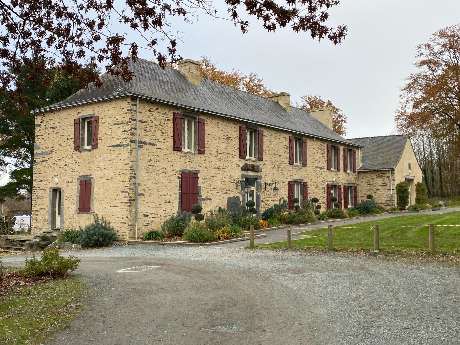 Après avoir laissé l'Église Saint Martin ( photo no 1 ) nous passons devant la mairie ( photo no 2 ) qui est un ancien presbytère où l'on peut y voir une vieille cheminée en schiste.