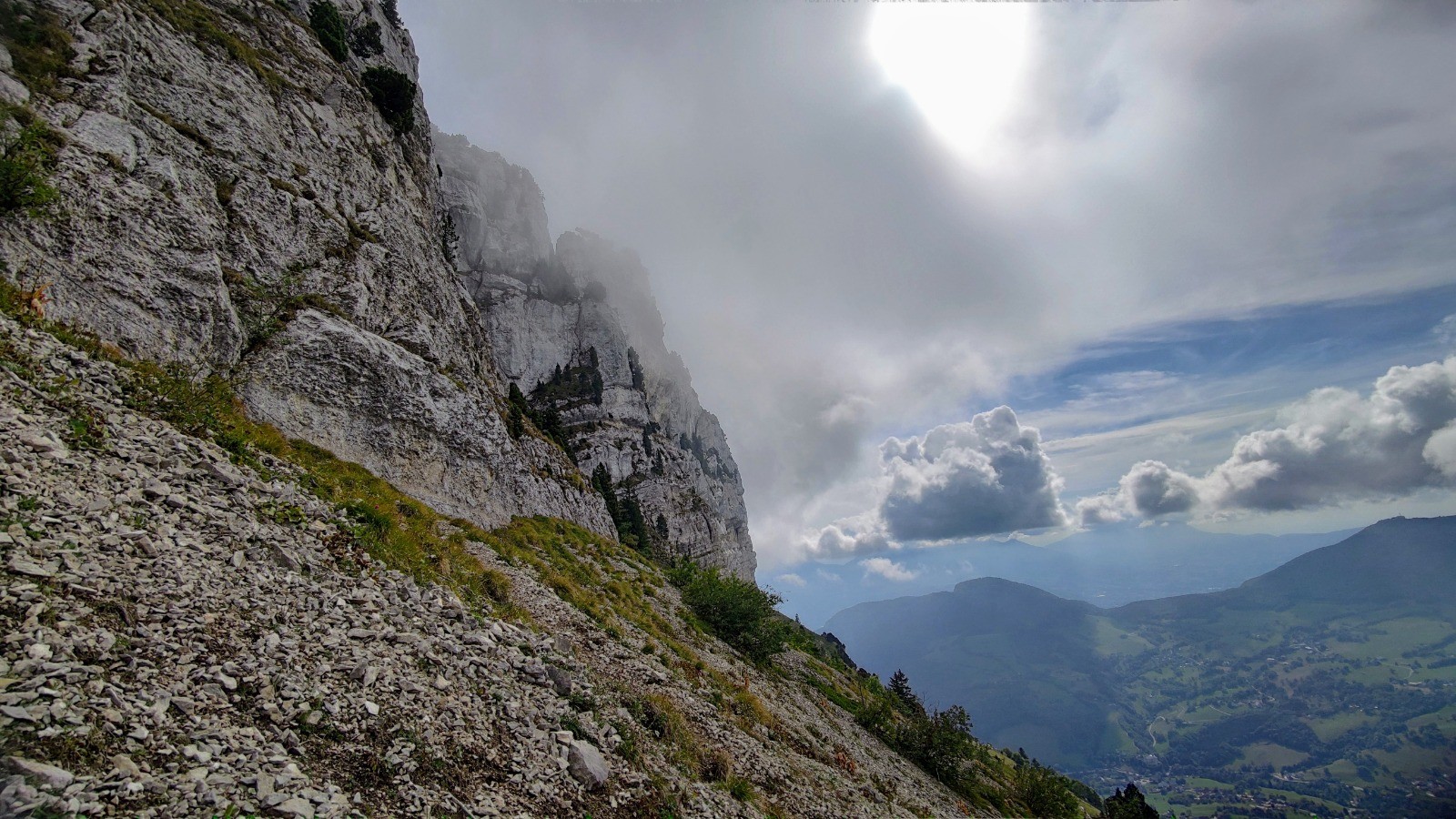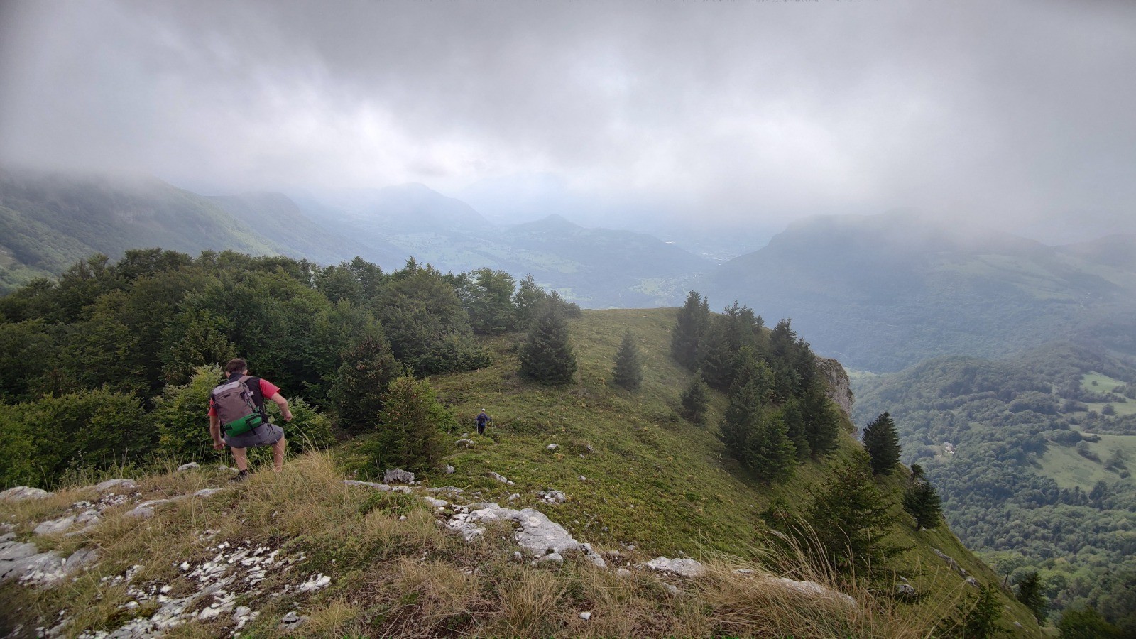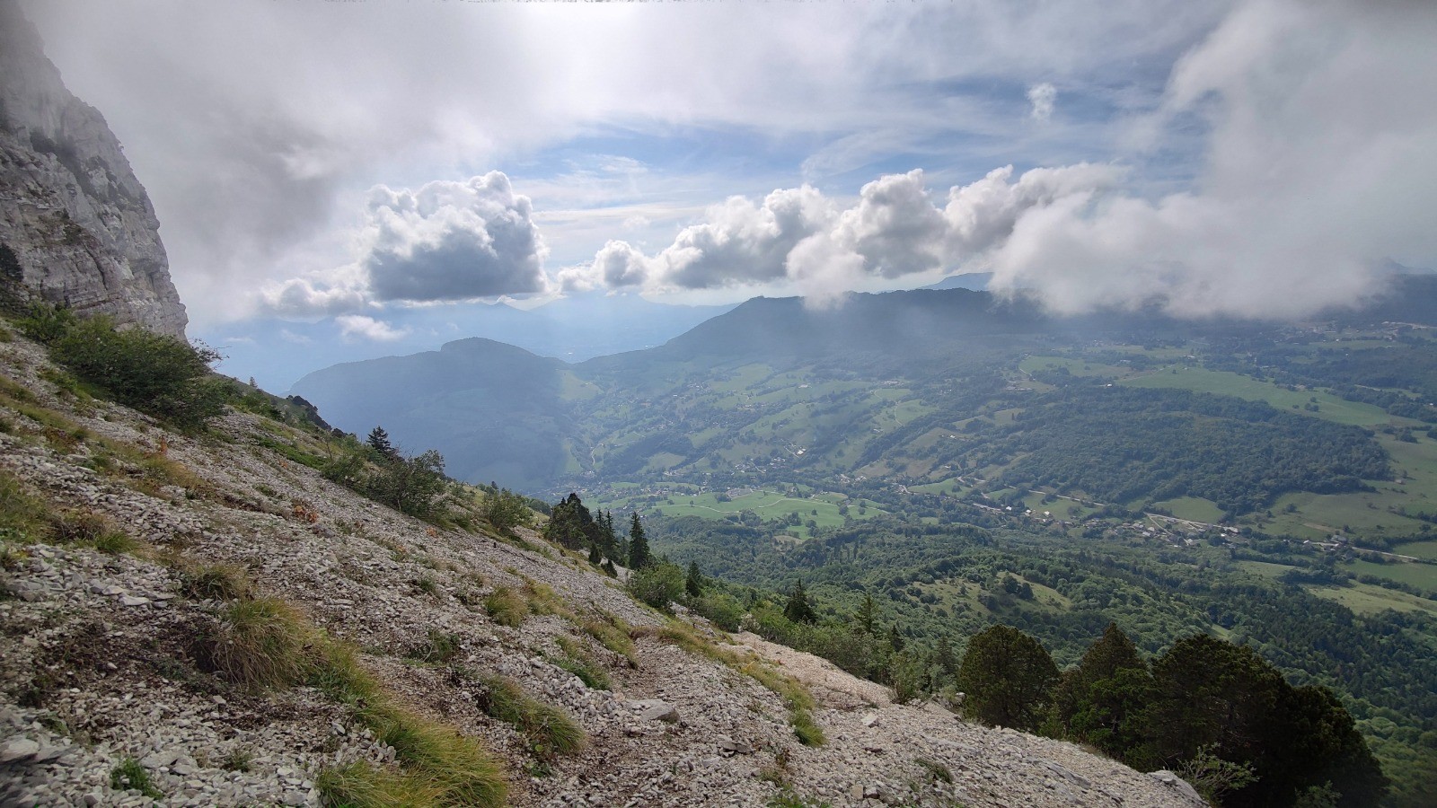 Descente : Par le Golet de l'Agneau, jolie faille dans la falaise, puis descente raide dans un pierrier avant d'arriver dans les bois et rejoindre l'itinéraire de montée.