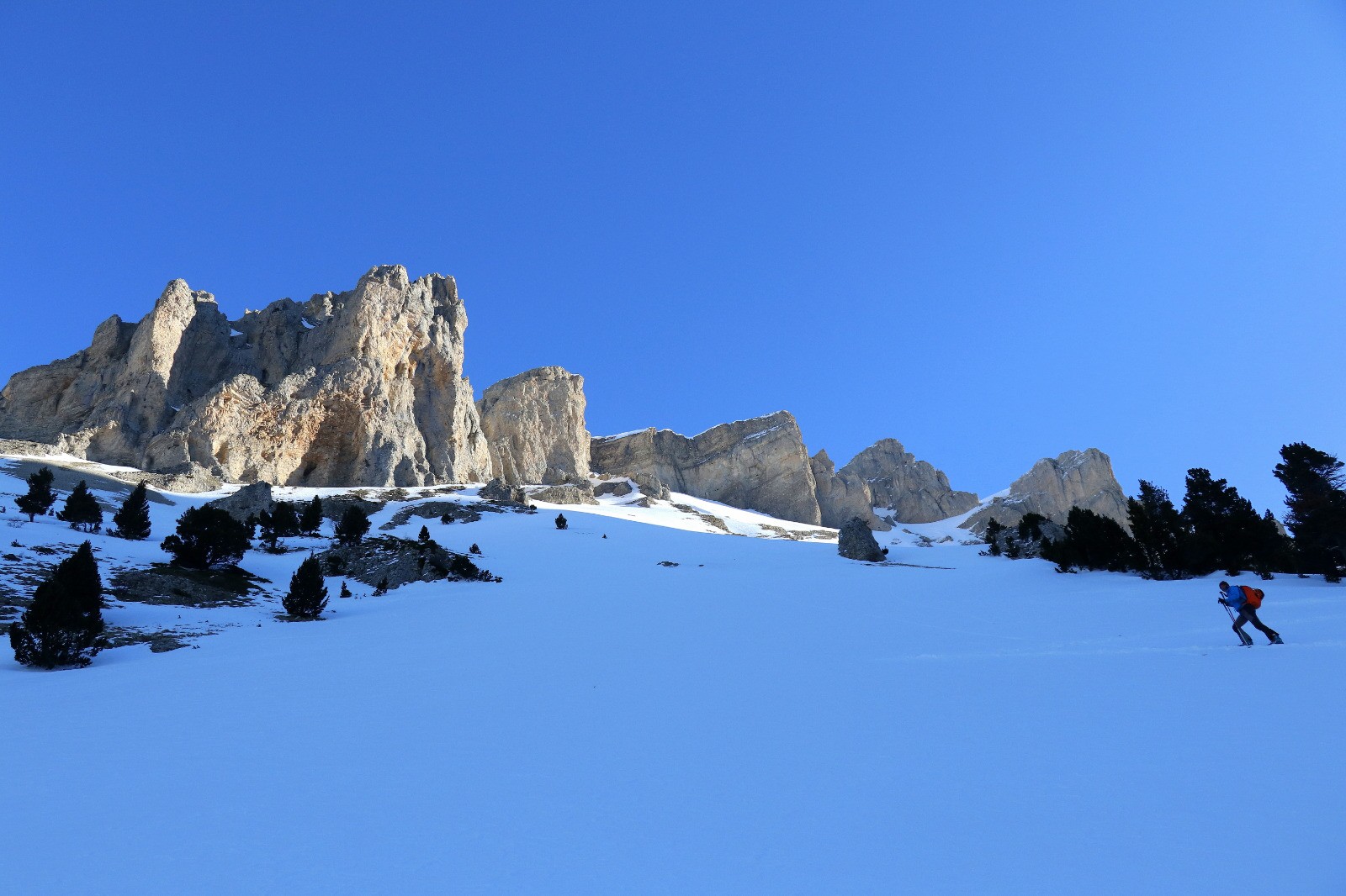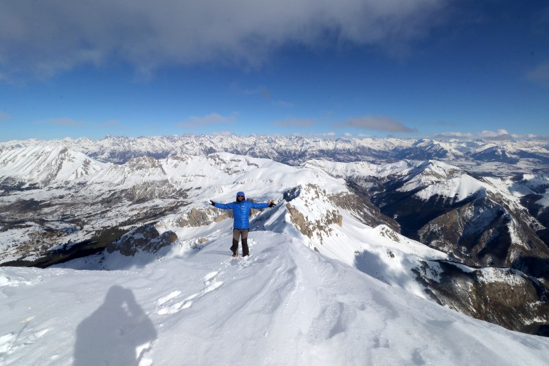 Pic de Bure. Au retour , passage par la fenêtre au dessus du Téléski (passage cablé) et longer la crête qui surplombe la