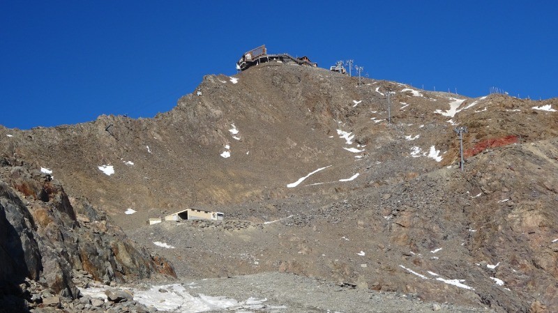 Au débouché du glacier on arrive alors au pied du télésiège du glacier. On a à nouveau le choix de remonter direct la piste de ski ou de prendre la piste carrossable.