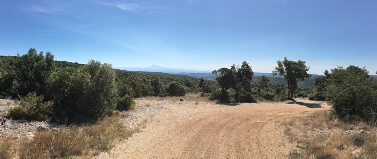 Pour voir un tel majestueux panorama, il va falloir donner et s'économiser: batterie pleine et jambes en forme. Et je ne vous ménage pas car retour par un mini col de montagne au dessus de Laval St Roman et un splendide single depuis le hameau de la cratoule. Bref, un périple sportif et sublime