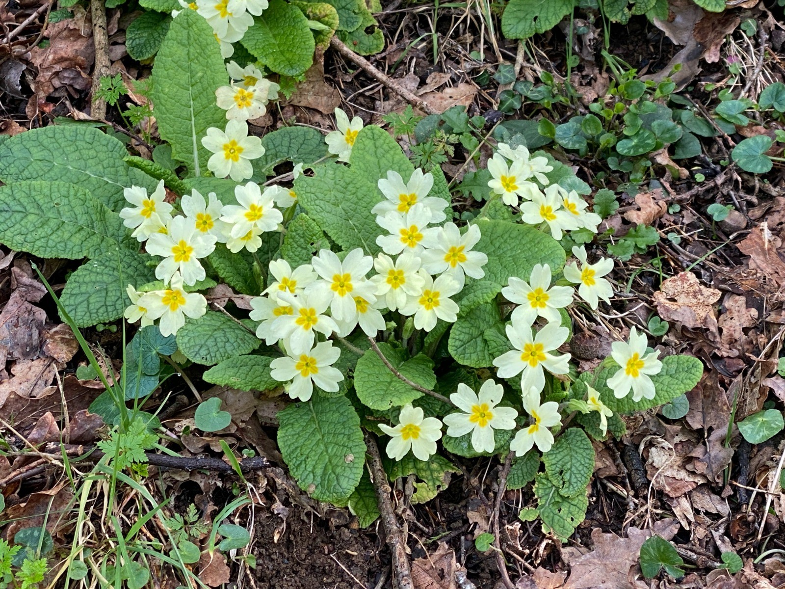 Sur le chemin du retour, vers le dixième kilomètre : abondance de primevères ( photo no 22 ) et quelques jonquilles.( photo no 21 )