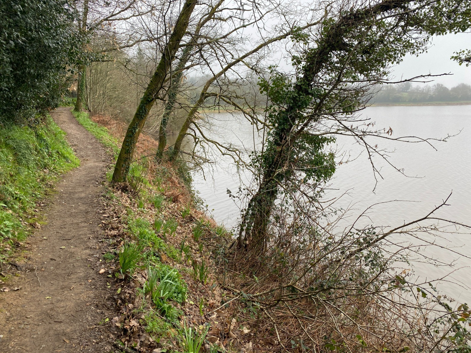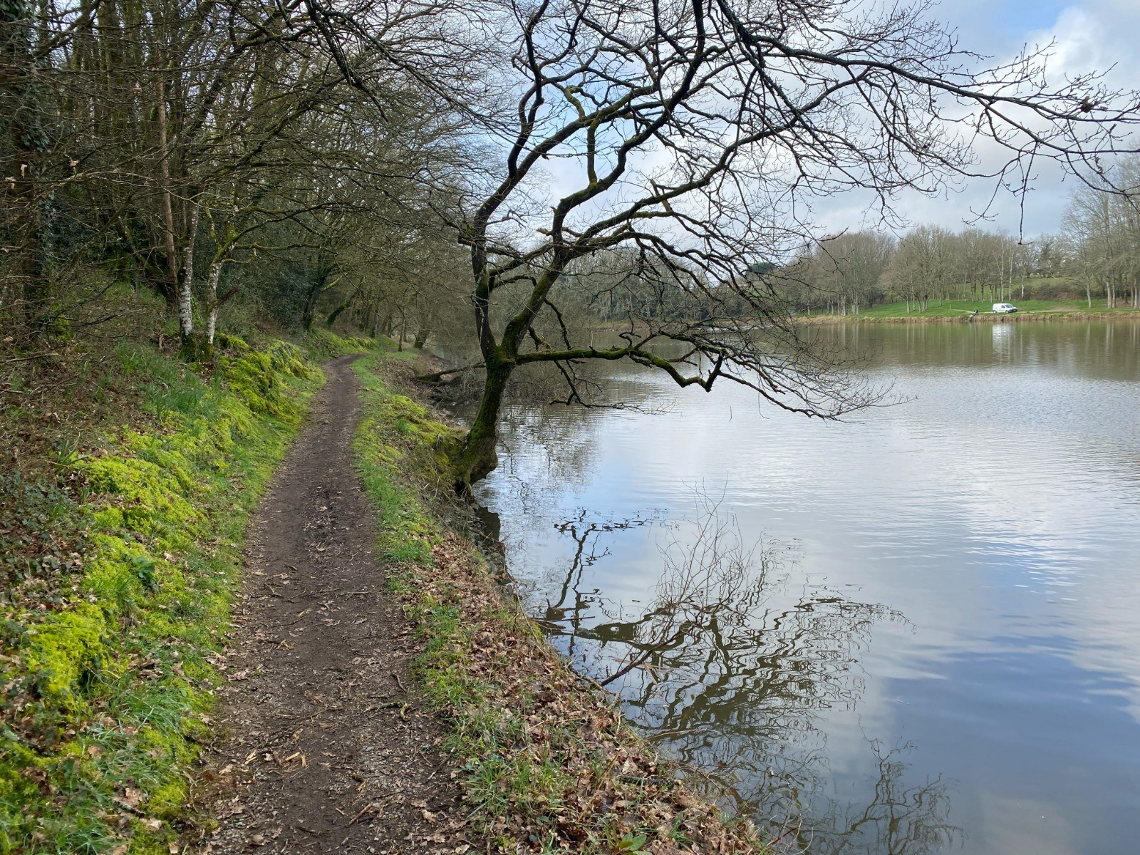Le sentier en fait le tour complet et dévoile à chaque détour une ambiance différente : sous-bois ombragés, prairies ouvertes, berges calmes où l’eau miroite, petites digues et zones humides.