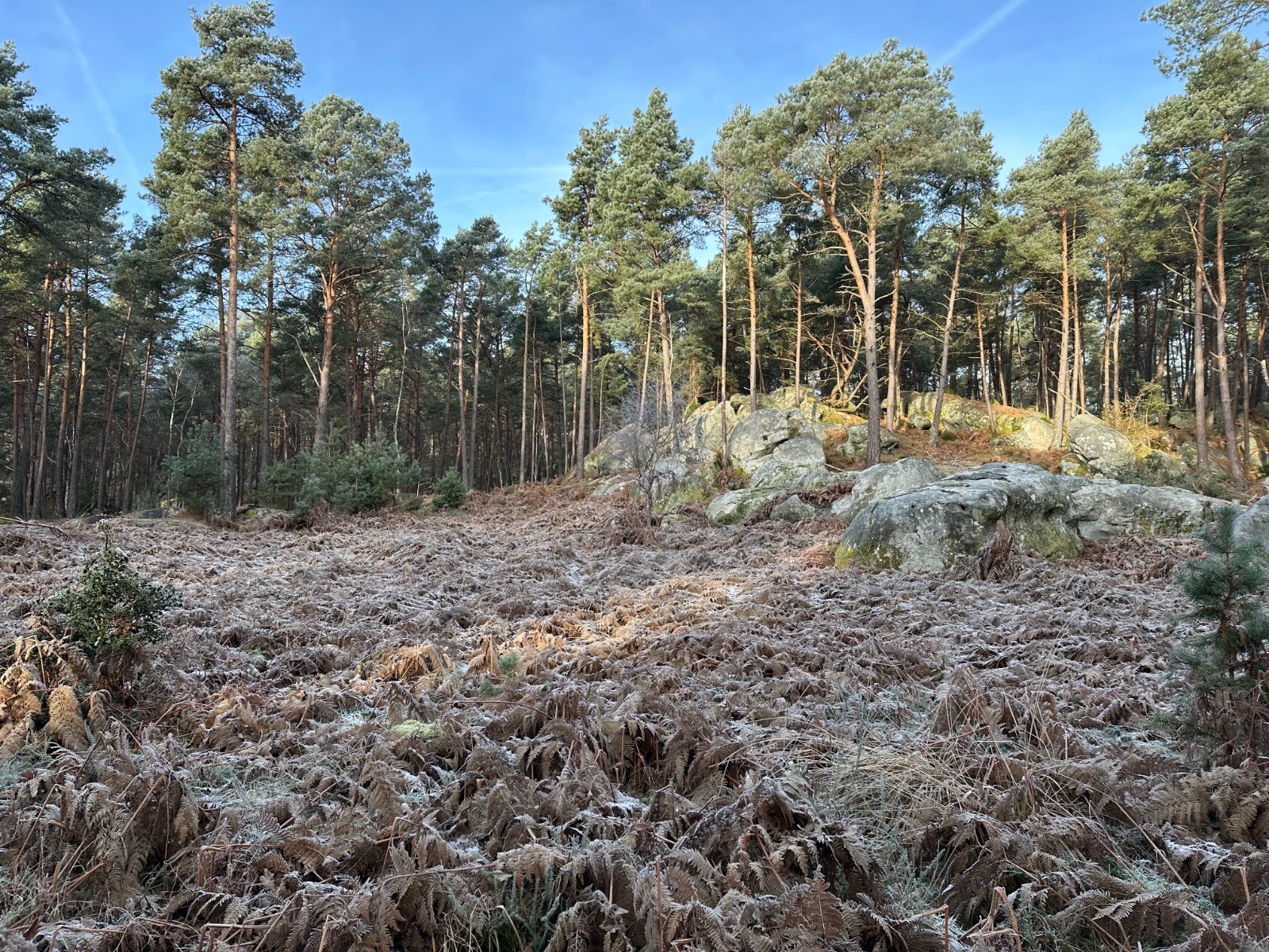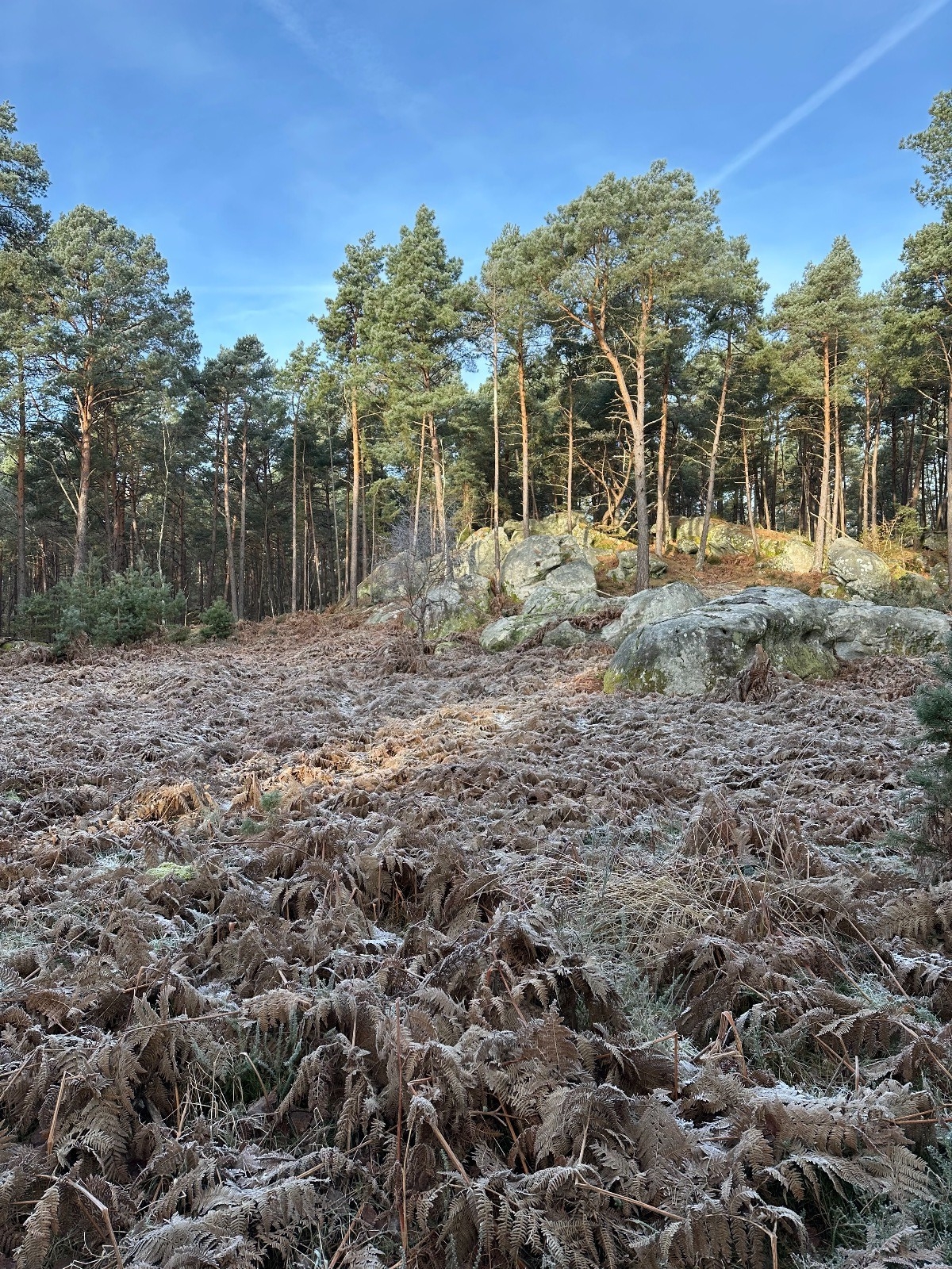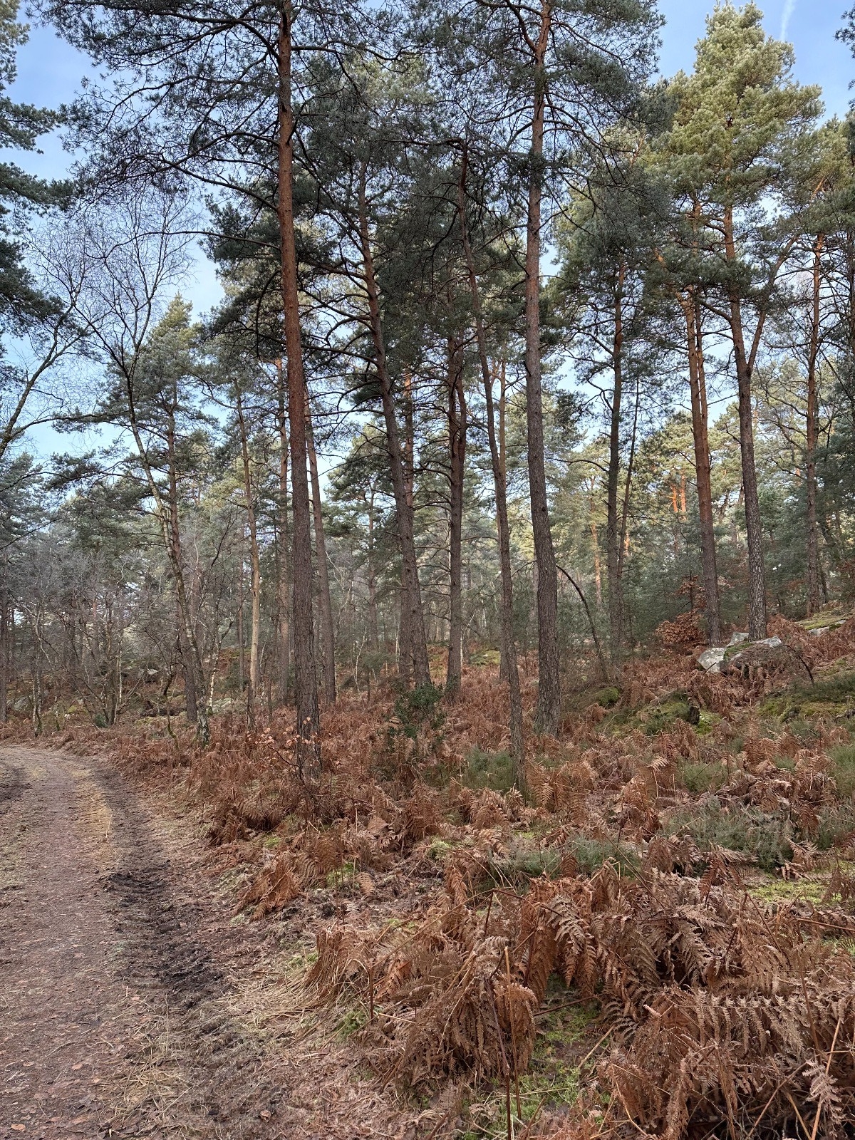 Départ par Fontainebleau et arrivée rapide dans une forêt de conifères magnifique.