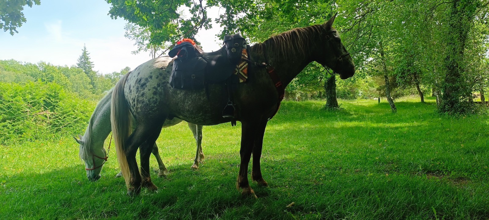 Au départ du gîte de la grange du Haut. Accueil à la ferme dans une structure "paysanne". Les chevaux dans un paddock 300m plus bas, nous dans une chambre d'hôtes, avec une bonne table 😃.
