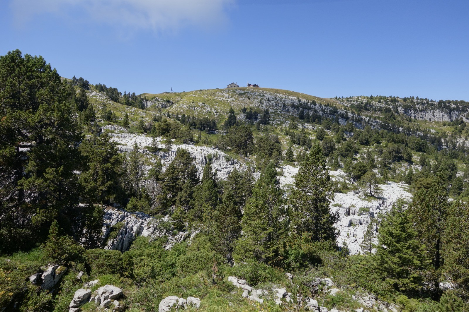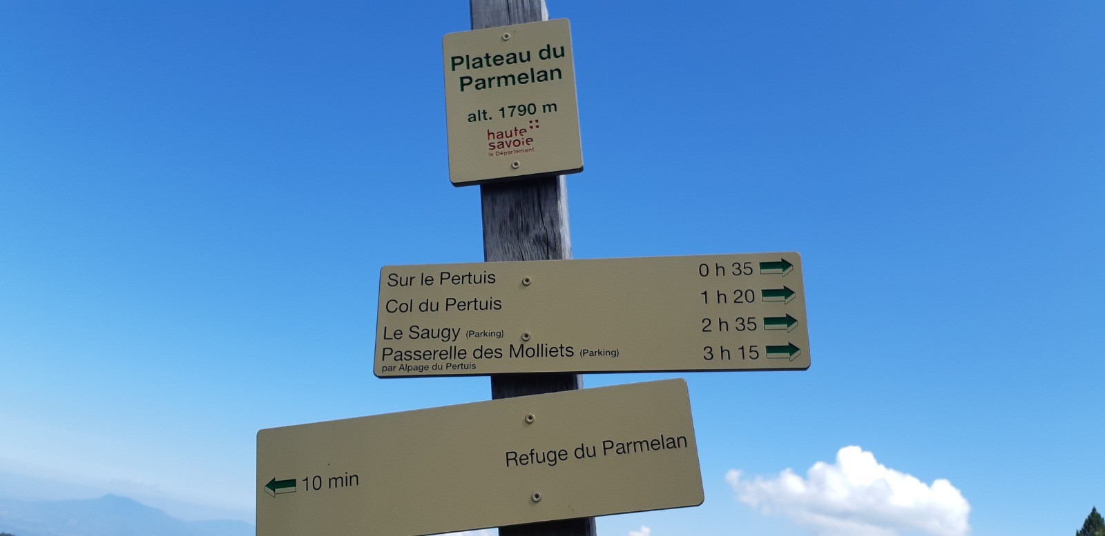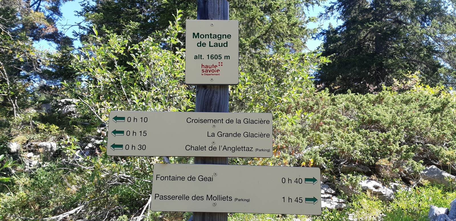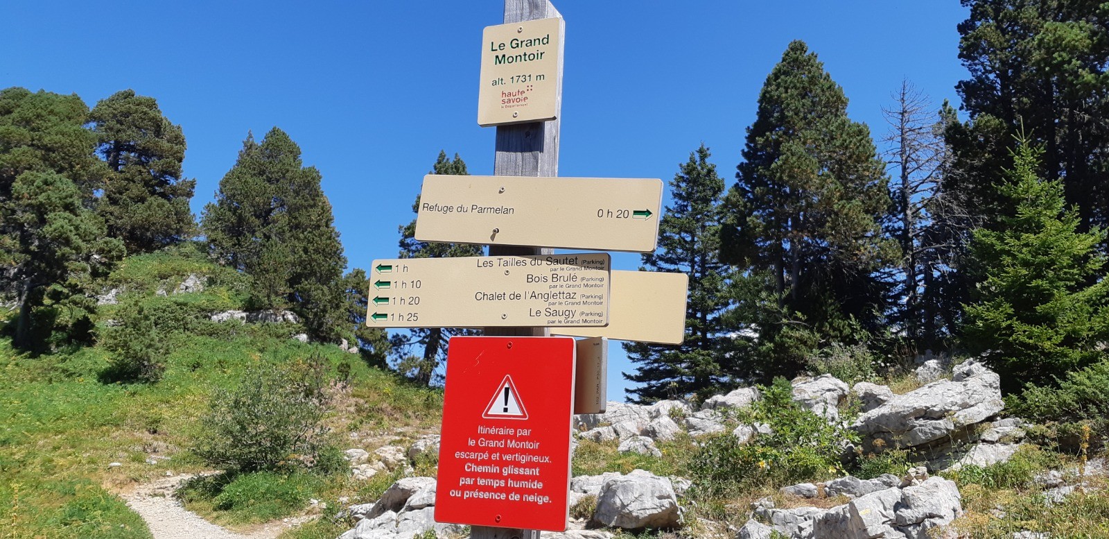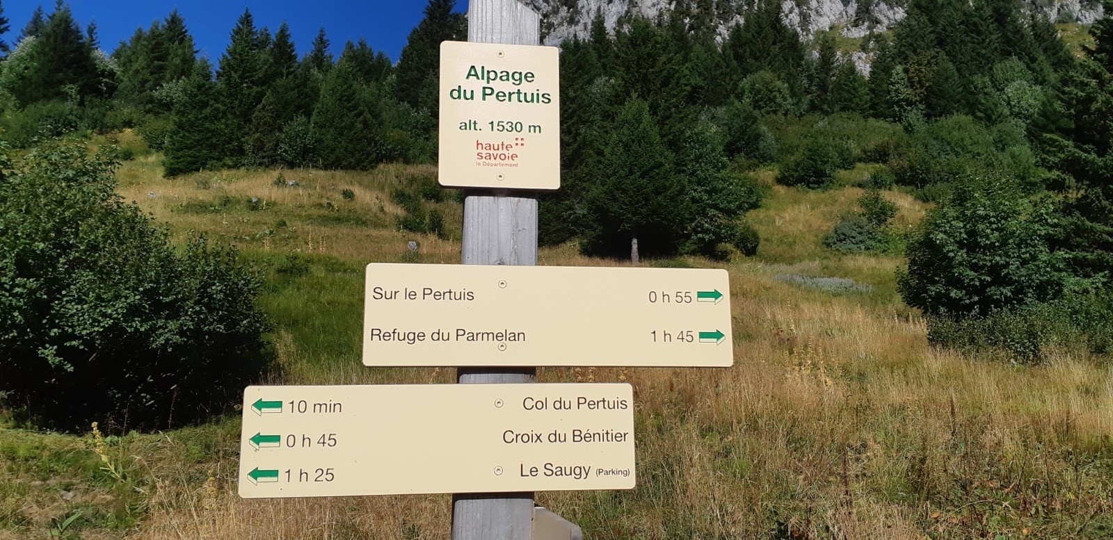 Départ de La Blonnière. Montée au col du Pertuis puis descente dans le vallon du Pertuis jusqu'à la Fontaine du Geai. Montée sur le plateau du Parmelan en passant par 3 passages assurés avec des câbles (à éviter par temps humide certainement).