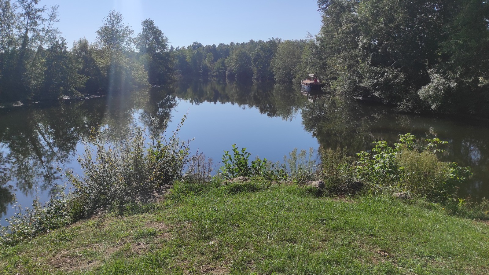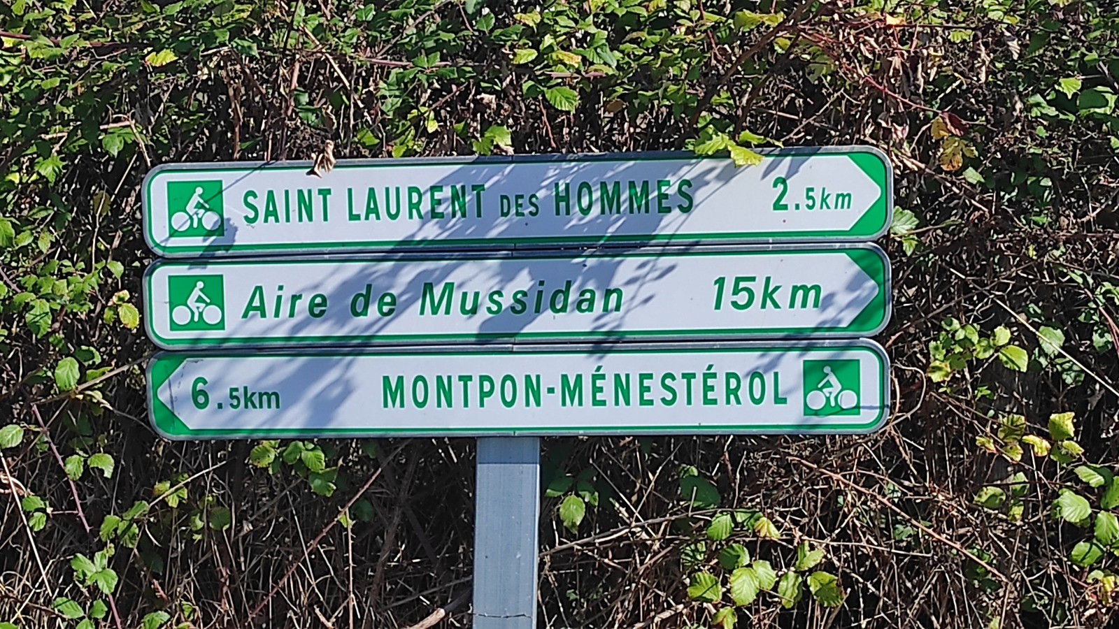 Dans l'après midi, je discute en roulant avec un cycliste qui me dit qu'il me reste 50mn jusqu'à Périgueux, puis 25 difficiles pour Brantôme. Du coup je pense faire halte à Périgueux, mais pas de camping. J'en trouve un à 28km et un 1hr38 d'après Google. Ouvert. Je suis Google mais j'aurais pu continuer sur le circuit quelques km encore. Difficile de passer d'une carte à l'autre. Et j'arrive pile poil à l'heure dite au camping, qui n'est qu'à 4 km de Brantôme finalement!!! Pas grave, super endroit paumé au milieu des poules et des canards. Fin de saison, ils n'ont plus rien mais me font une omelette frites.