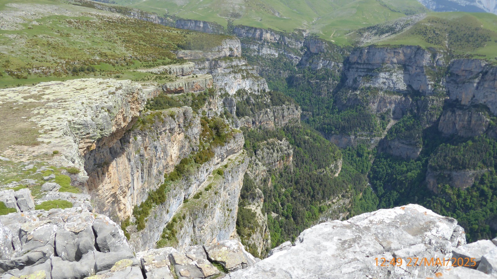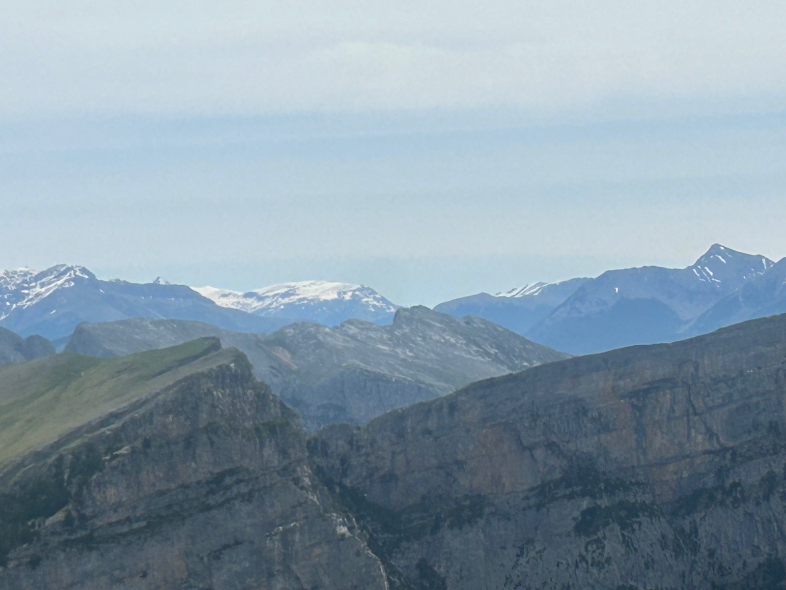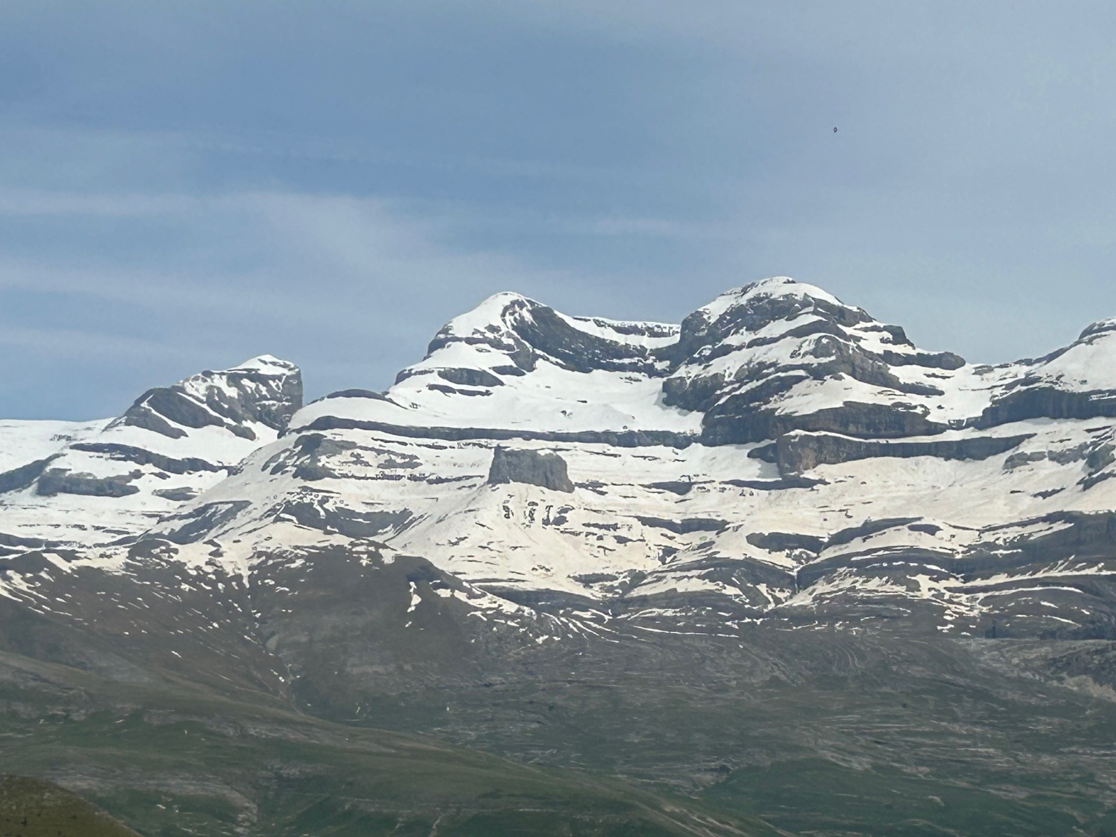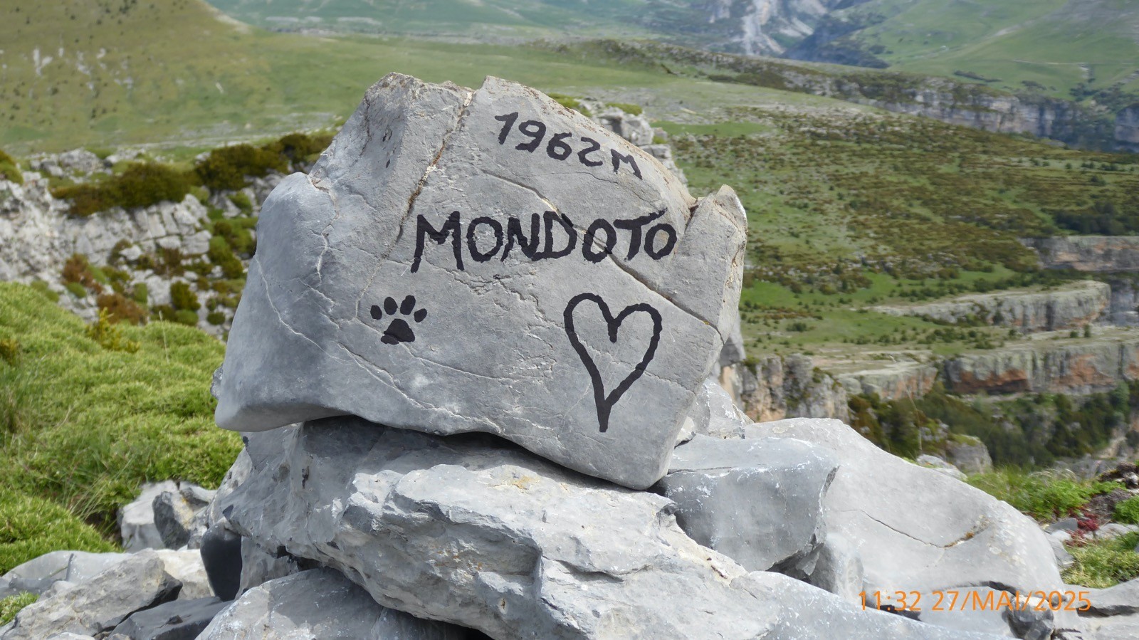 Très belle course depuis Nérin en Espagne pour aller faire le tour de ce sommet .Le pic de Mondoto, est principalement connu pour sa beauté naturelle et son accessibilité pour les amateurs de randonnée. Son nom, "Mondoto", provient d'un dérivé de termes locaux qui désignent des caractéristiques géographiques ou des éléments de l'environnement environnant. Le suffixe "-oto" peut également être commun dans certains dialectes pour désigner des collines ou des sommets. Plus spécifiquement, dans de nombreuses régions montagneuses, les noms des sommets peuvent être liés à des particularités culturelles, historiques ou linguistiques des populations locales. Le spectacle toute la journée était grandiose; Mont Perdu , Cylindre du Marboré, Tour du Marboré, Tres Marias, Sestrales Altas et bajas, Castillo Mayor, vue vertigineuse sur le fond du canyon d'Añisclo à peu près 850 ou 900m.Si on regarde attentivement la cartographie espagnole, alors on remarque par exemple que le Mont Perdu que l'on traduirait par Monte Perdido porte le nom de Punta de Treserols et pourtant en1802, le français Louis Ramond de Carbonnières explore le site et ses guides réalisent la première ascension connue du Mont Perdu....., de même, le Soum de Ramond est nommé Pico d'Añisclo et pourtant ce sont les français, Georges Devin, Albert Guyard, Célestin et Henri Passet, suivis de Pierre Brioul et Henry Russell, qui le 10 septembre 1877 en ont fait la première ascension.... , de même, le Cylindre du Marboré lui est nommé non pas Cilindro de Marboré mais Mallo de Marmorés et pourtant la première ascension est faite en 1864 par Henry Russell avec Hippolyte Passet..... Quid de tout ceci ???