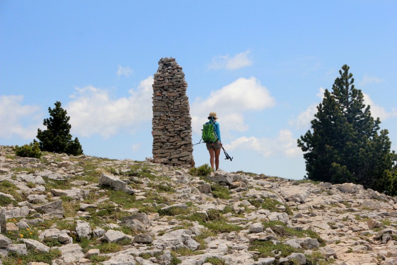 GR91 que l?on peut récupérer en divers points et que l?on suit jusqu?à un immense Kairns qui indique le chemin de descente vers la