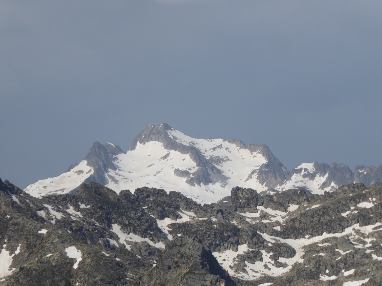 La météo était moyenne avec un risque de pluie élevé. Le Soum de Marianette est un beau sommet qui se trouve entre L'Arbizon, le Monfaucon et le Pic du Midi de Bigorre . Il est au pied du Pene Arrouye. Le soleil étant bien présent cette matinée, ....on ajoutera à cette course ce Pene Arrouye; qui demande de l'attention ainsi que la crête de Carrot Nègre, car il faudra poser les mains pour atteindre le sommet: vue sur le Réservoir des Laquettes, le Lac de Gréziolles , Le Contadé , Les Quatre Termes, Le Néouvielle, le Ramougn à sa gauche , le Pic Long, Le Pic de Bastan.