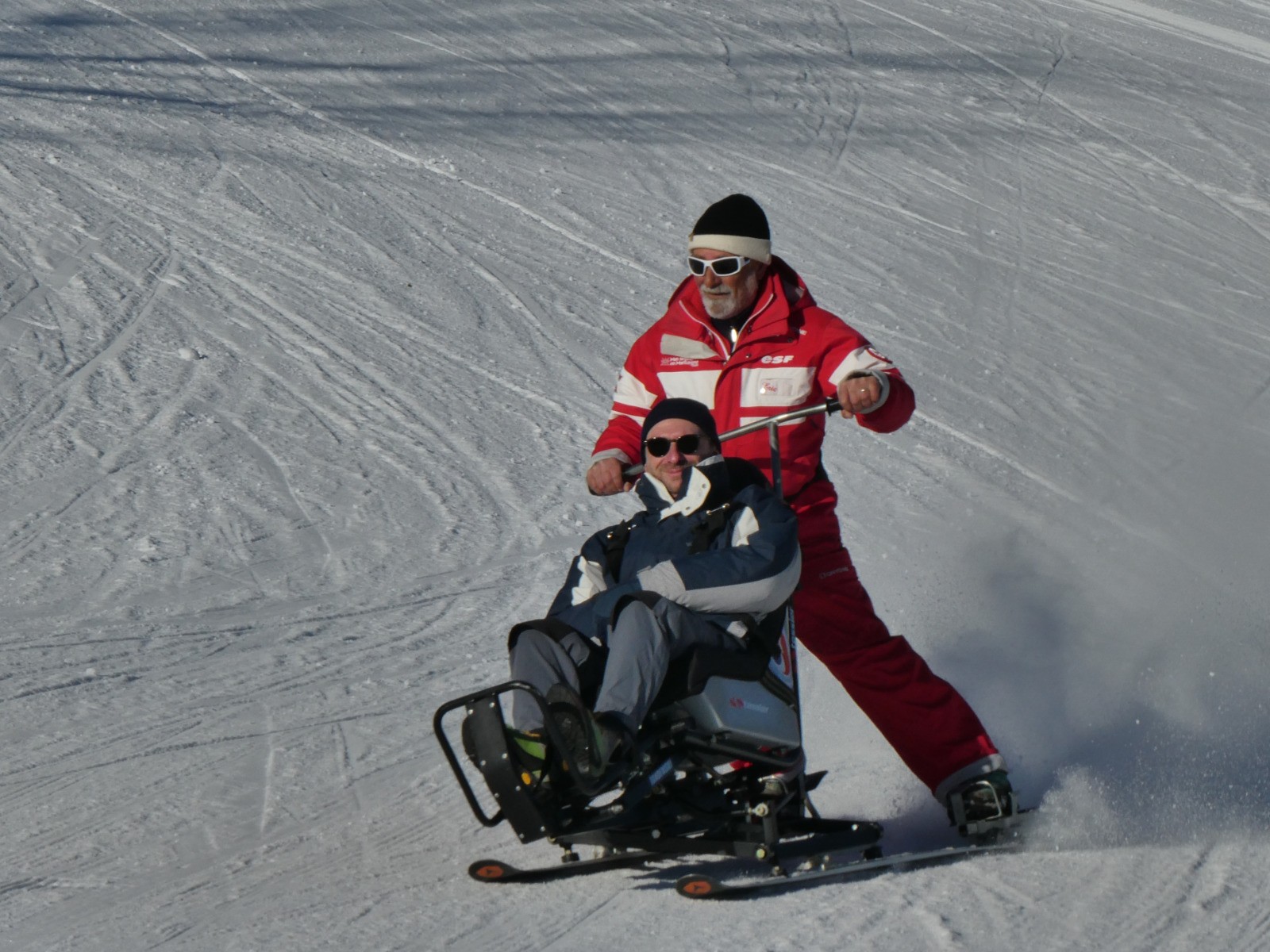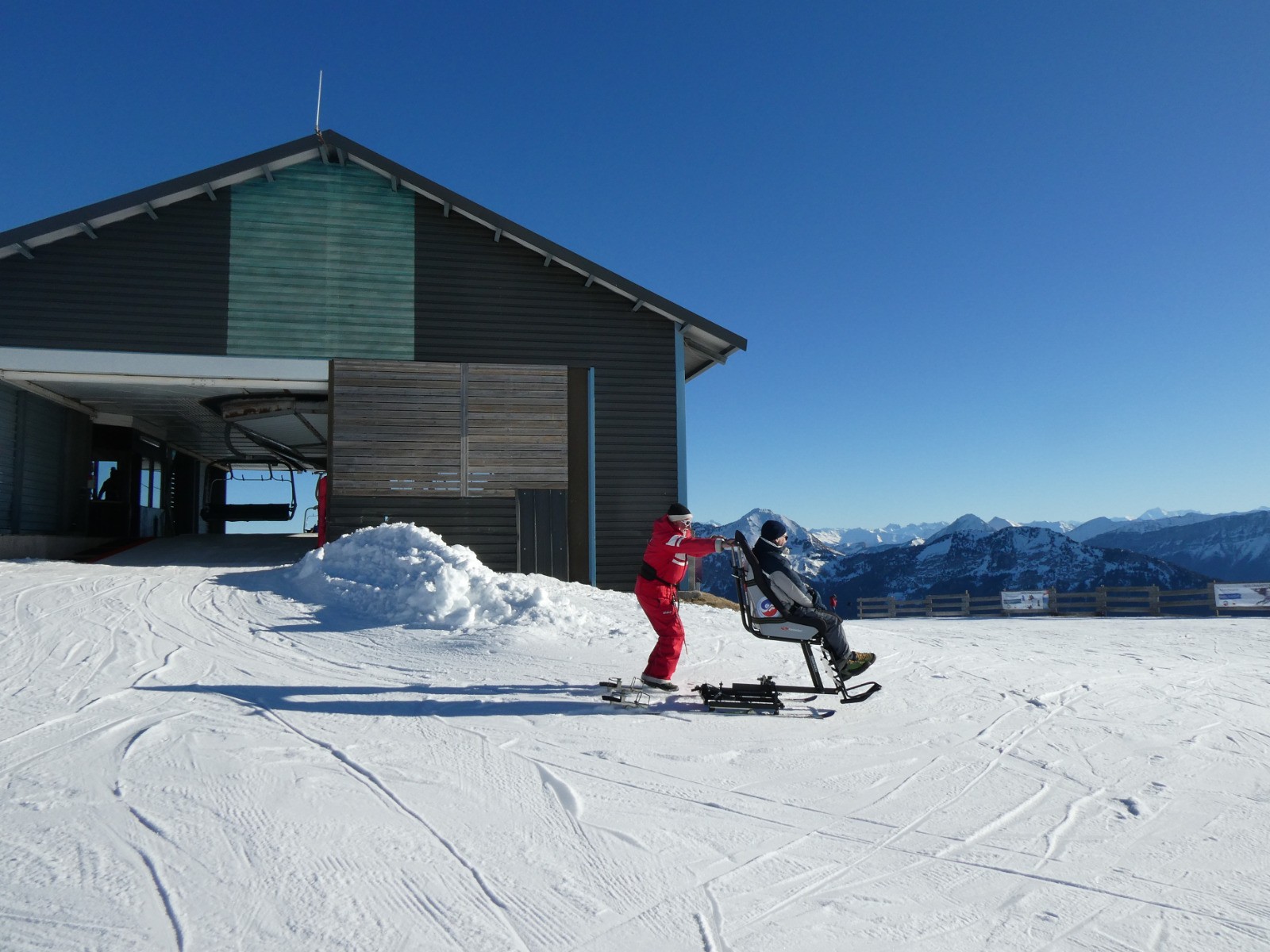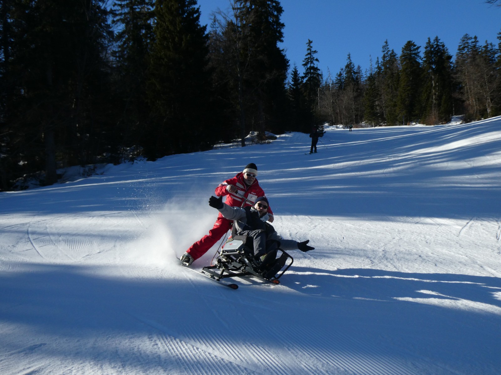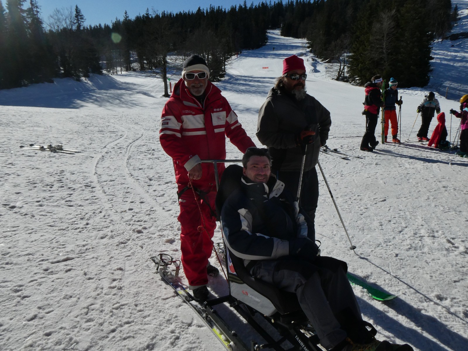 Magnifique matinée de handiski avec les copains et Eric le pilote, au Margériaz!