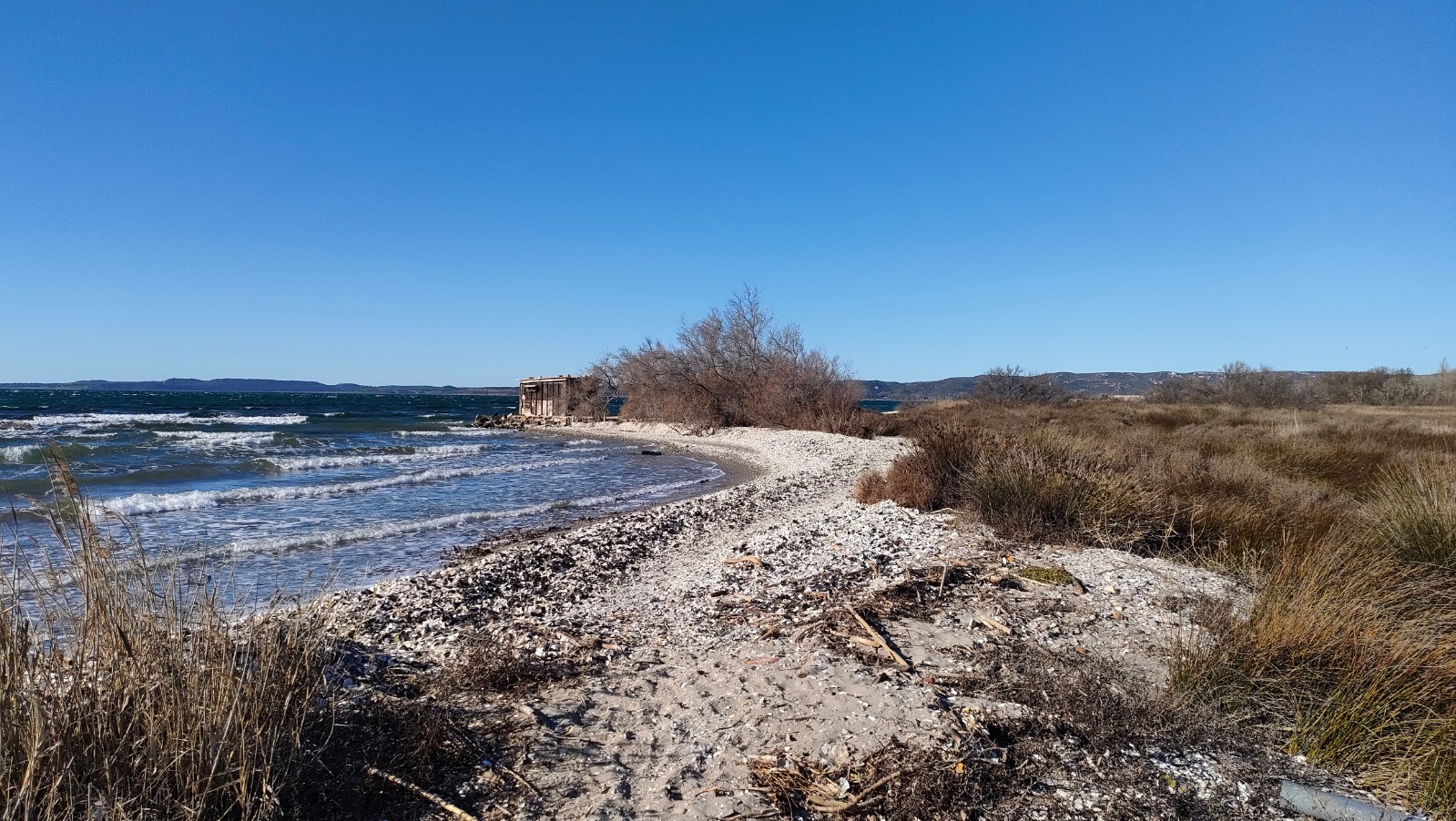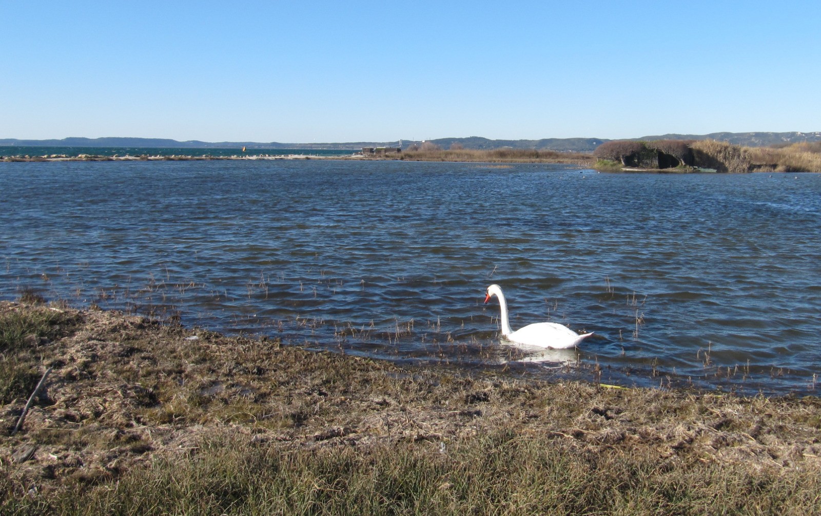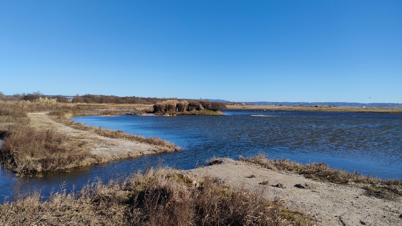 Une fois l'estuaire de l'Arc atteint, on tourne à gauche pour longer les rives de l?Étang jusqu'au parking du départ.