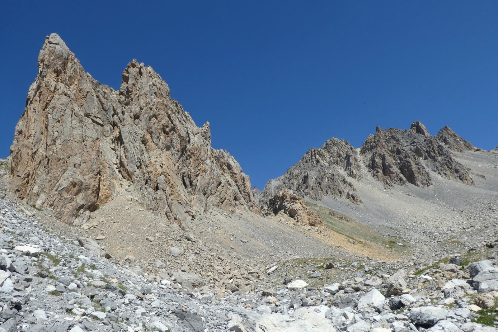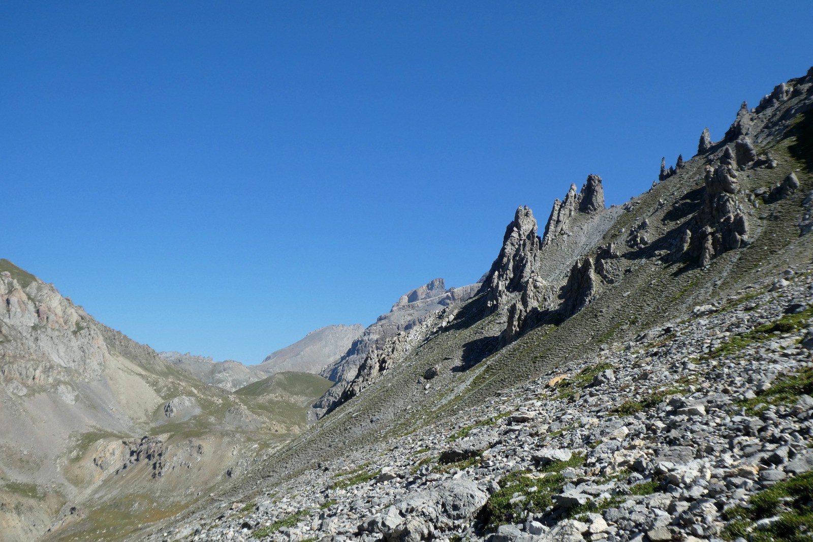 Ambiance minérale puis verdoyante autour des sommets de La Meyna et de la Tête de Viraysse.