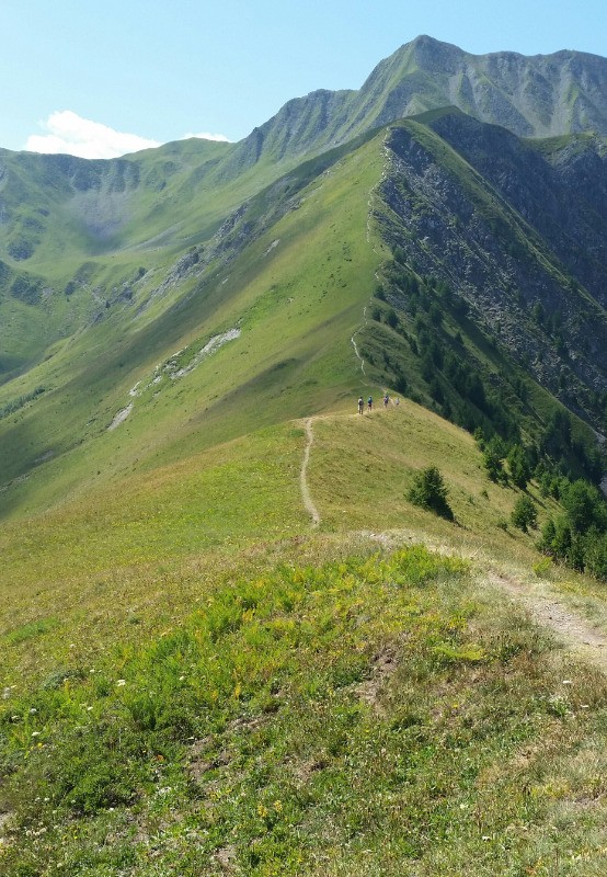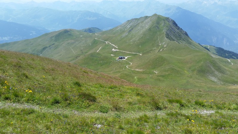 Départ du parking du Pralioud . Longer le télésiège du Fornelet , prendre le sentier de découverte , monter en direction du Plan de le Tigne Chal. , la Tête de Jarset , Le Col du Lac , passer près du Lac Bovet , continuer en contournant le col du Jovet pour arriver au sommet du Mont Jovet . Pour la descente rejoindre la piste en passant près du Chalet des Etroits et rejoindre le point de départ .