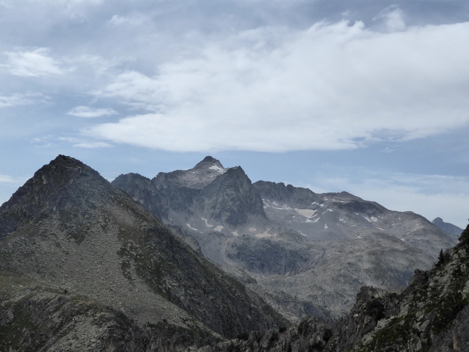 Le massif du Néouvielle est un massif de montagnes de la chaîne des Pyrénées et dans le département des Hautes-Pyrénées . Il mesure 25,5 km de long pour 17 km de large, et culmine au pic Long à 3 192 mètres. Géologiquement parlant, à cause de la nature plutonique de ses roches et de sa position centrale dans la chaîne, le massif du Néouvielle fait partie de la zone axiale des Pyrénées. La montée au col entre le Pic de Lurtet et celui des Crampettes est un peu soutenue!!! Le Pic de Lurtet culmine à 2506m et celui des Crampettes à 2484m.Vue magnifique sur le système lacustre Dets Coubous, sur le Néouvielle, le refuge de la Glère, sur le Cylindre du Marboré vers Gavarnie et aussi sur le Pic du Midi de Bigorre .... Vue à 360° superbe.
