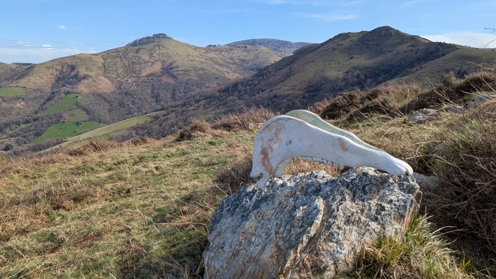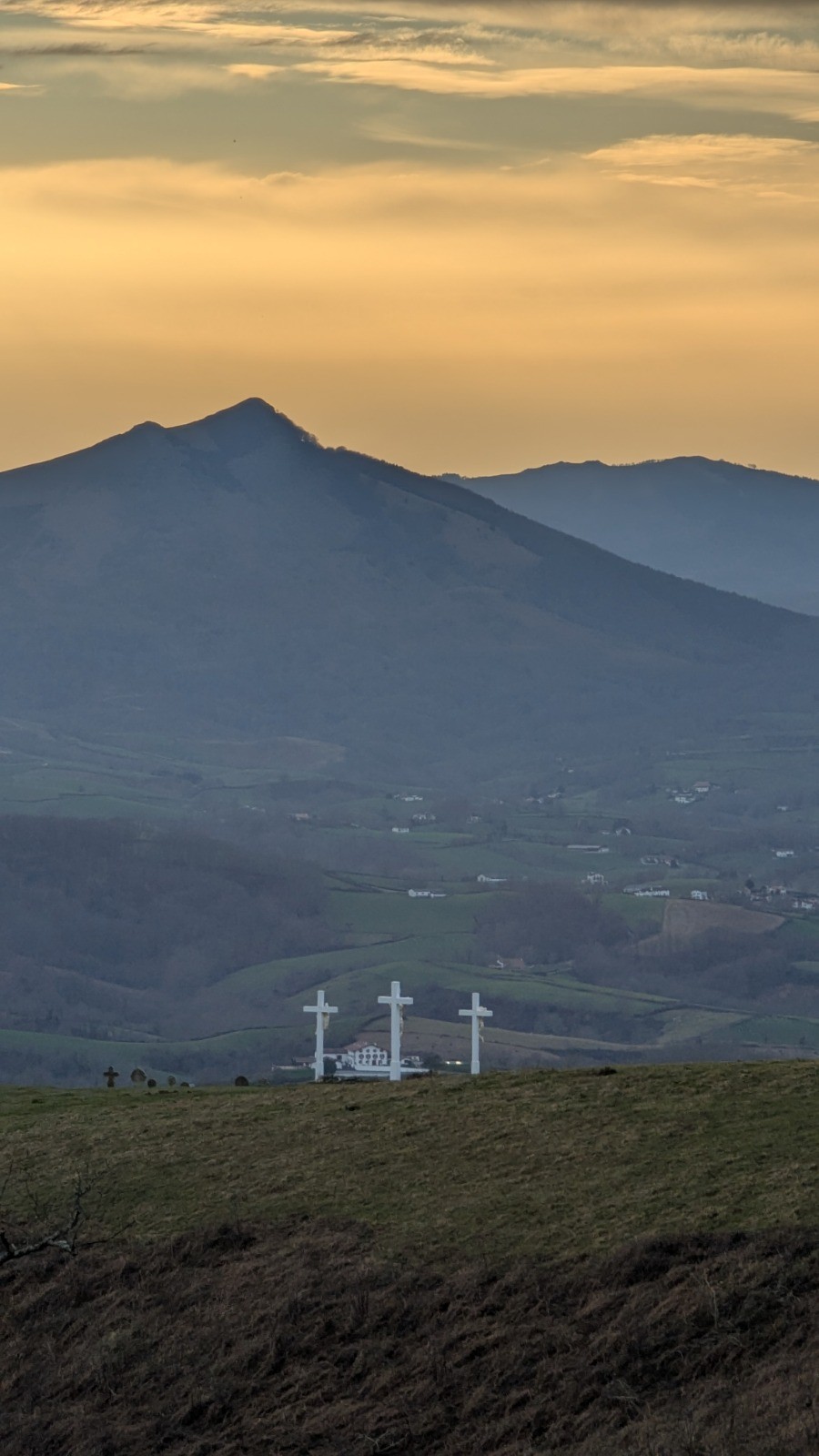 Départ d'Ainhoa, montée au col des 3 croix, au col de Zuharretako, et celui du Gorospil via le GR10. Petit incursion en Espagne pour aller chercher les bunkers au sommet du Lizartzu. Retour par une petite variante sous le Mondarrain, la chapelle de l'Aubepine, un peu de jardinage au soleil couchant.