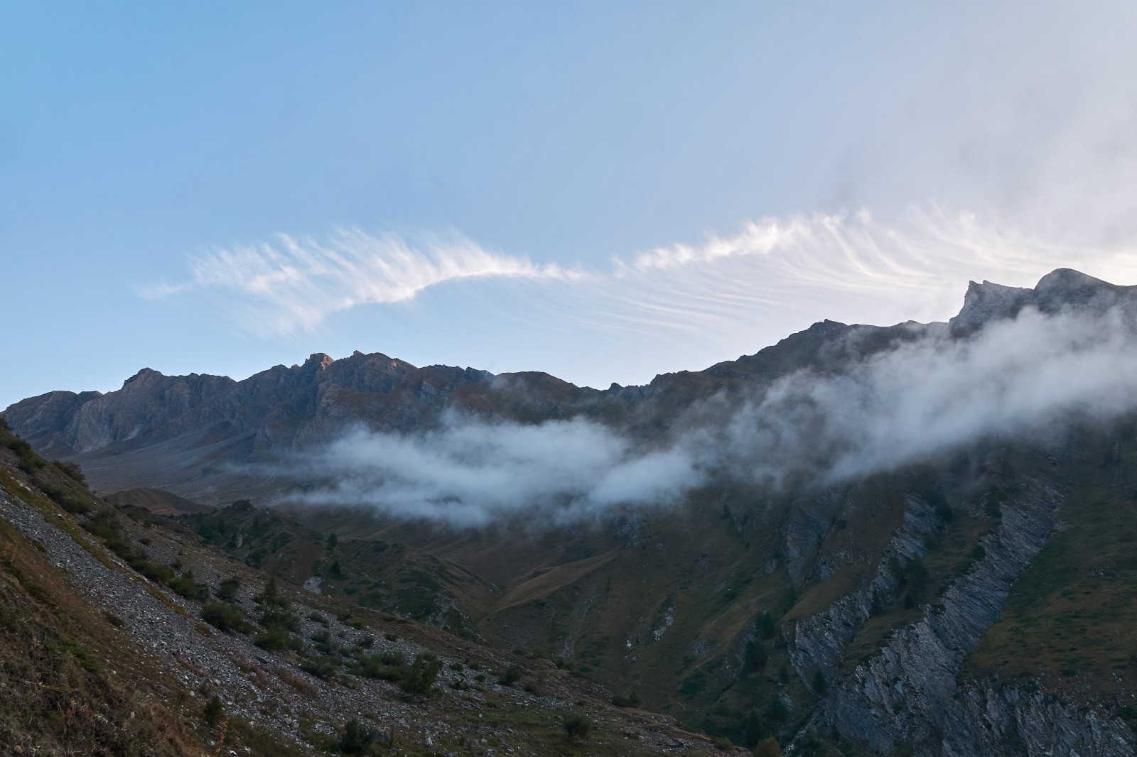 La pointe de Drumianaz rentre dans cette catégorie. Je l'avais repéré sur la carte récemment, et ma curiosité à été récompensée. Le dénivelé et correct (+950m), un petit peu de longueur (+-16km), les 300 derniers mètres de dénivelé hors sentier avec une recherche de l'itinéraire (surtout dans le brouillard comme ce matin), de très beaux panoramas et une solitude garantie,