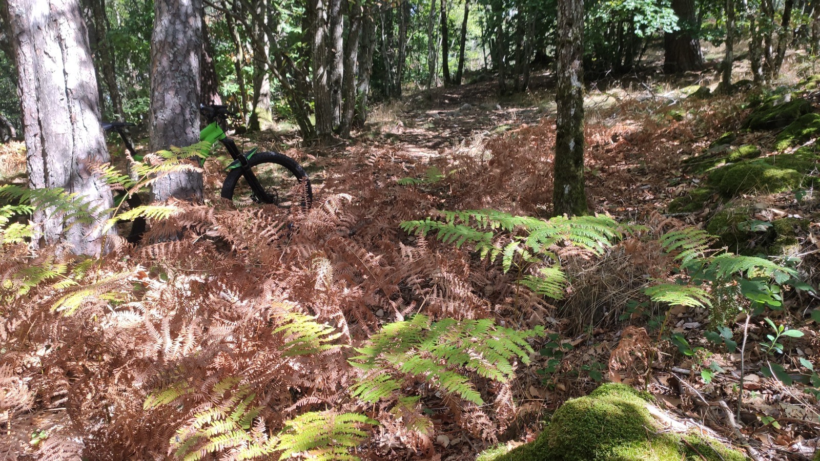 Une impro bien plaisante au départ de Pollionnay, avec une ascension classique au départ par la voie romaine. Du col de La Luère, je rejoins l'auberge à ma façon en prenant quelques singles DH à la montée (que je ferai au retour dans le bon sens). Je fais la Béber intégrale puis traverse en direction du Vernay, un cheminement que j'adore et qui va sans doute disparaître (1eres traces d'engins qui élargissent ce beau passage). La ligne choisie pour descendre du Crêt Chevreau est genre hard-core (en choisir plutôt une autre); Zigouisgouis dans le secteur du plat du chêne (petites sentes ludiques, qui me mettent toujours la banane). Descente du Bouillon (le gros arbre en travers a été enlevé).