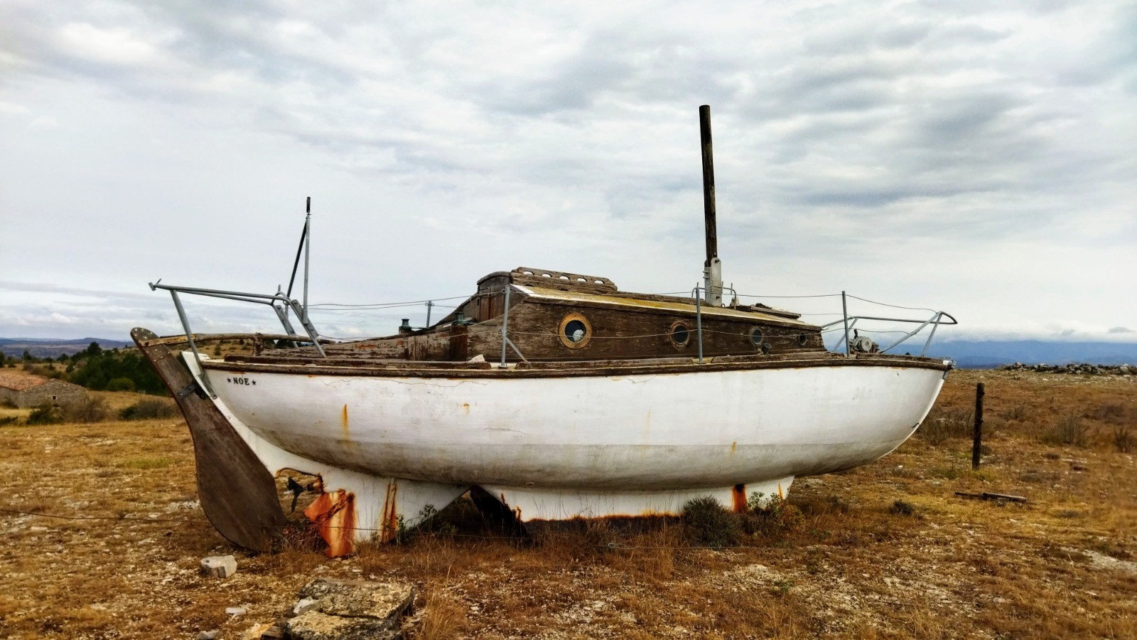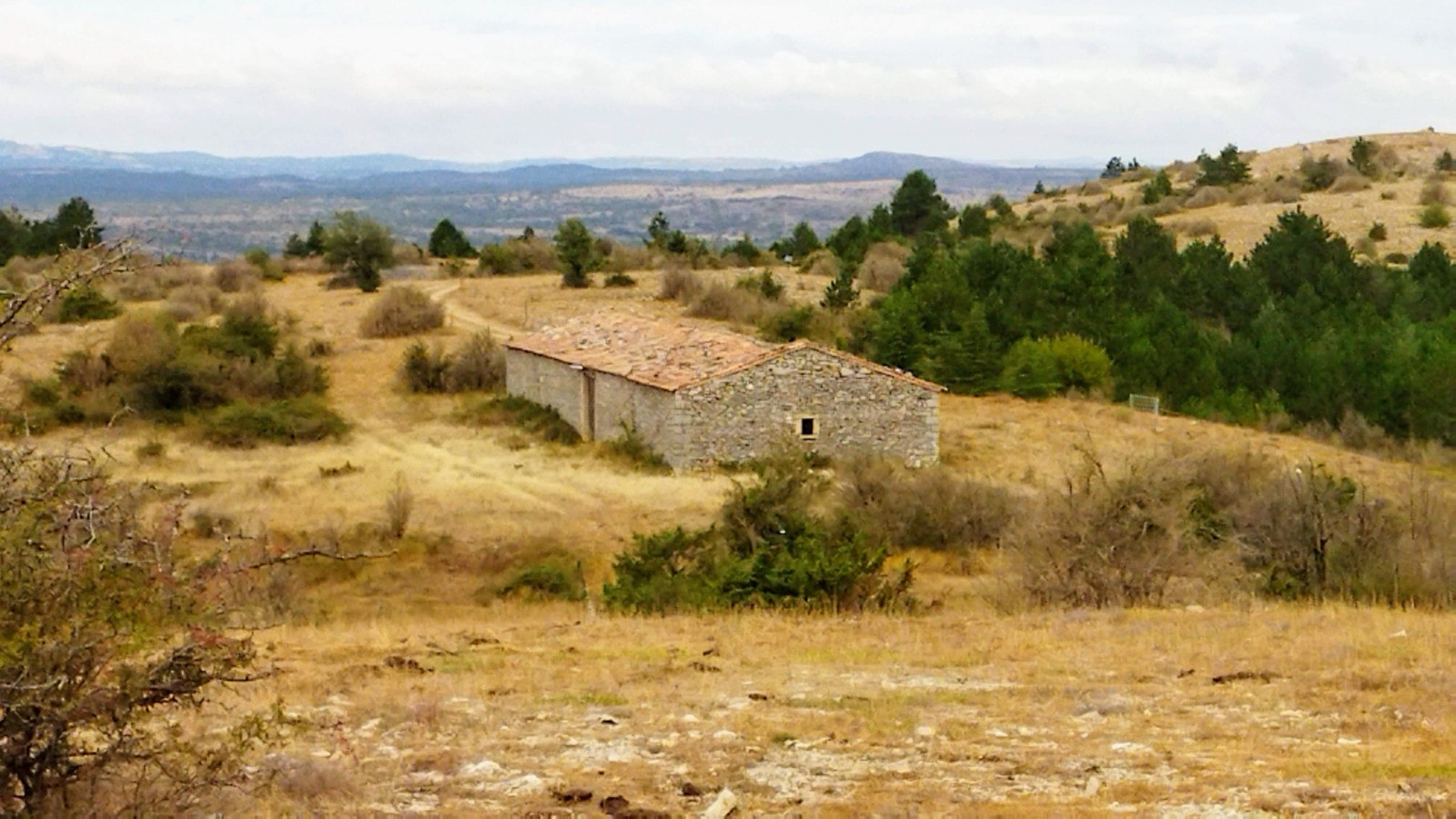 Petite erreur au Km 3.2 où nous avons oublié de prendre à droite, et petit détour hors sentier pour voir la bergerie de Tédenat et l'arche de Noé sur la colline.
