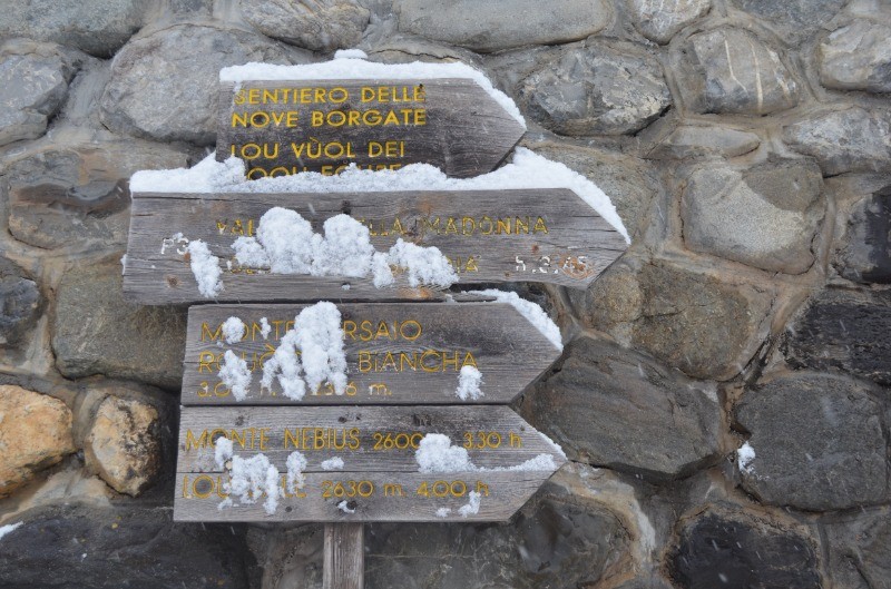 Au 1er jour de la semaine de rando GAAG de février 2018 dans le Val Stura, on s’arrête au col de Larche pour en faire une première avant de gagner notre gîte à Sambuco. (Recommandé)