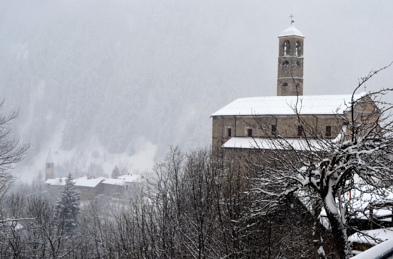 Le temps devait se gâter mais non. En redescendant on croise Alain et Jos partis plus tôt que prévu. Qq photos de Sambuco sous la neige du soir.