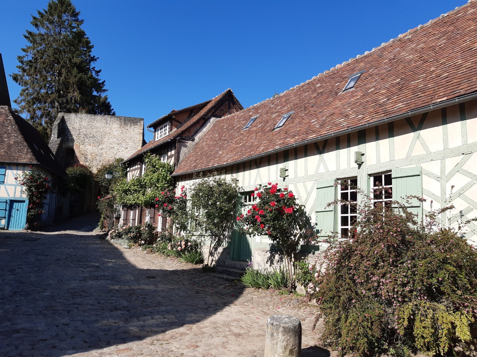 Partir par la rue Logis du Roy et descendre à droite vers le Bosquet. Suivre le GR pendant 2 kms et continuer jusqu'à la Croix des Fétieux. Prendre à droite puis à gauche vers Buicourt. Plutôt que de prendre la rue principale, prendre à gauche le sentier puis former les 3 côtés d'un rectangle par la droite. On regagne alors la rue principale et se diriger vers l'Eglise. Emprunter le chemin qui monte derrière l'église et monter ensuite par le 1er sentier à gauche. Rester sur ce sentier qui tournera par 2 fois sur la droite et traverser la forêt Domaniale de Caumont. On rejoint Songeons. Traverser le Thérain et emprunter la rue Jean Touchard. Prendre ensuite à droite la Rue du Maréchal De Boufflers, puis encore à droite la rue Requignard. Au bout, prendre à gauche, puis face au château, prendre à droite et retraverser le Thérain. Rester sur ce "parcours de santé" en fond de vallon, puis remonter vers Gerberoy. Contourner le village par l'Est (Allée du Jeu de tamis). Monter vers la Tour Charlemagne et visiter le village avec ses belles maisons de colombages et joliment fleuri de roses en ce milieu de printemps.