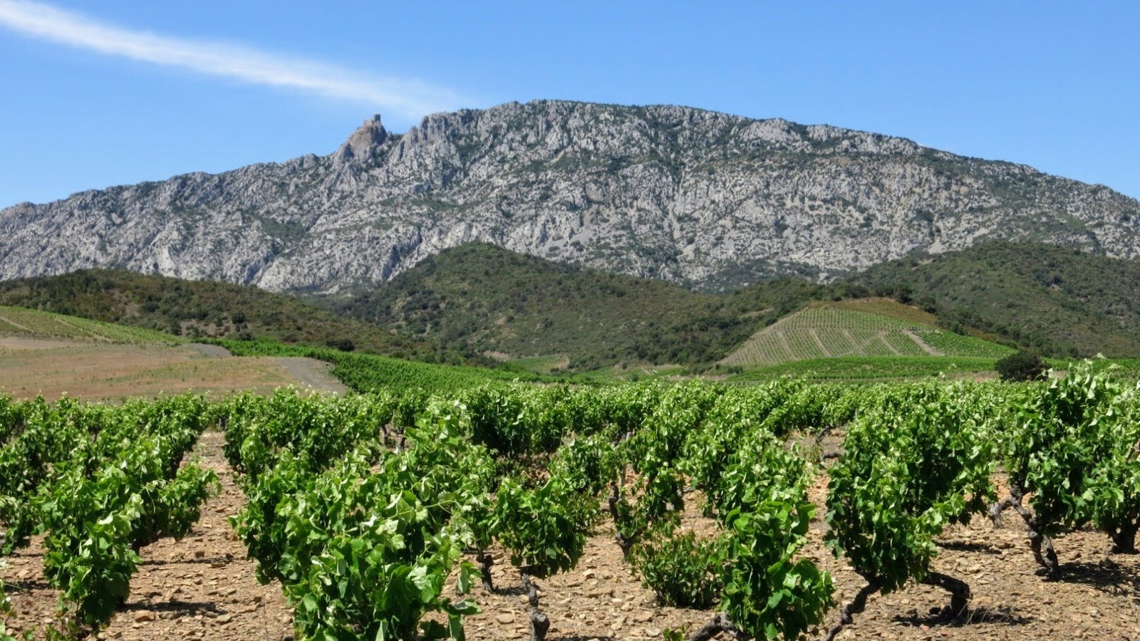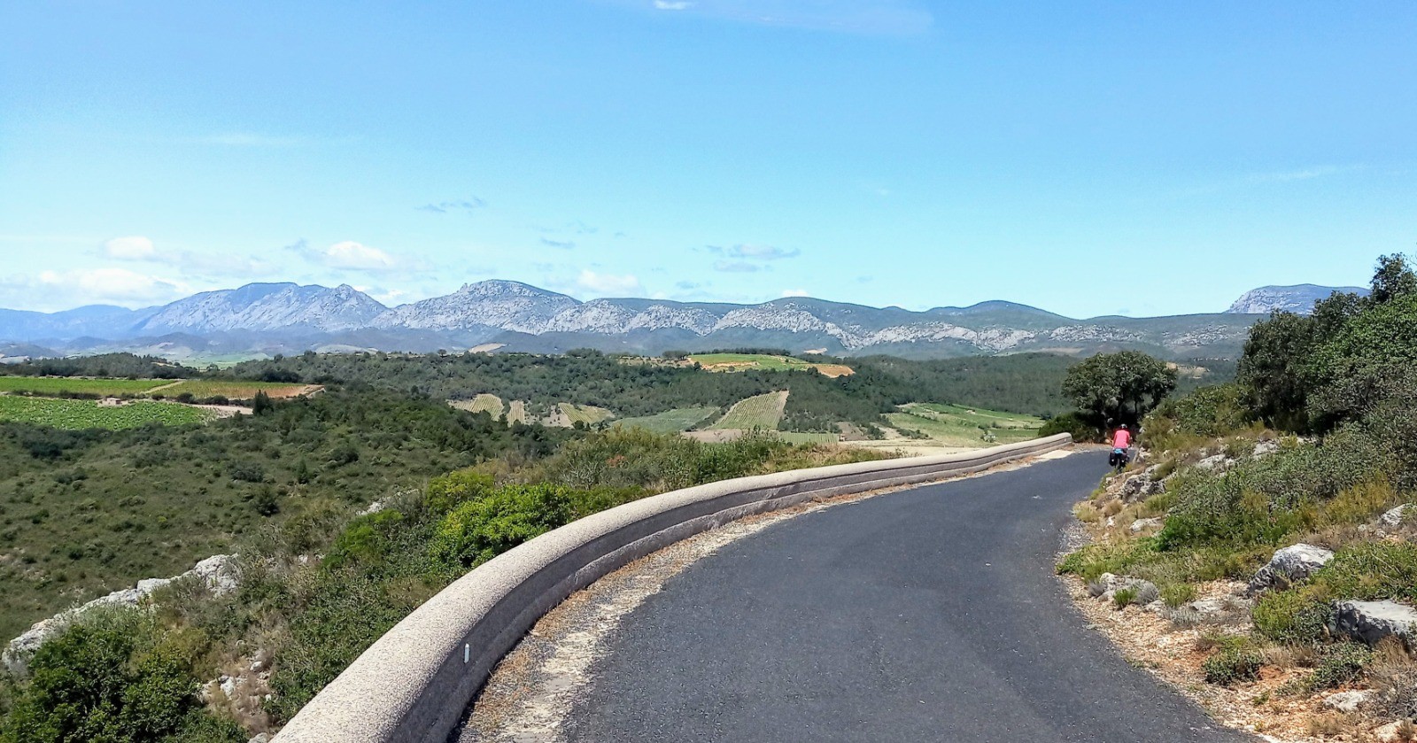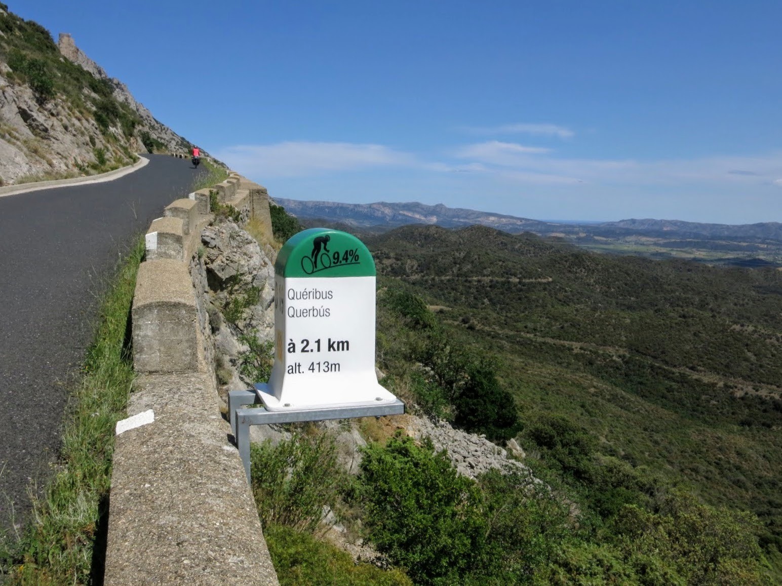 C'est par une rude montée (13% de moyenne sur plus d'un kilomètre avec des pointes à 17%) que nous atteindrons le château de Quéribus, qui offre un panorama grandiose sur la plaine et jusqu'à la Méditerranée.