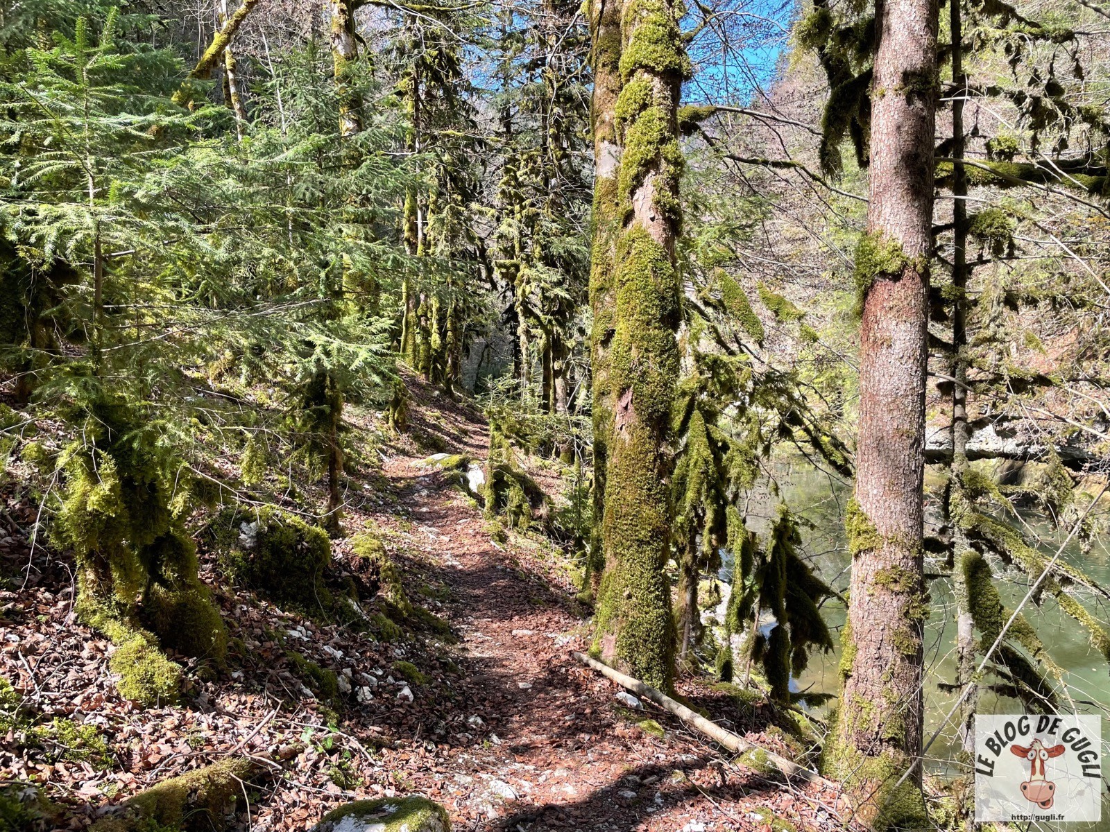 3.Près de chez Némorin, poursuivre le sentier tout droit tout droit jusqu?à la grotte du Grenier (Ne pas prendre le sentier qui descend au niveau du Doubs sur votre droite)