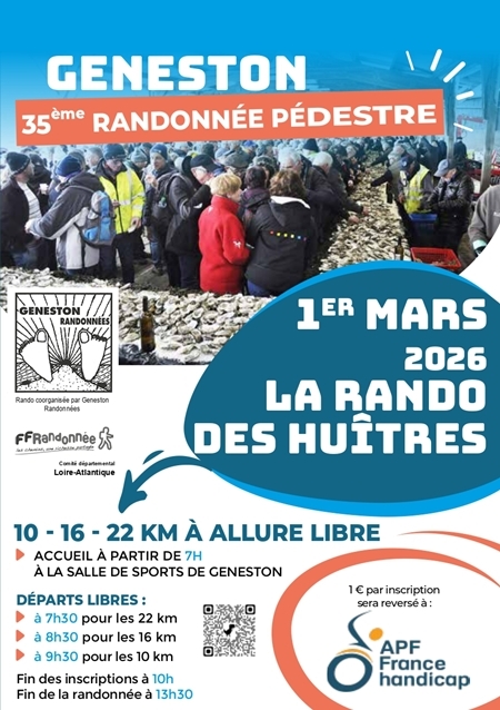Inscription pour un montant de 9€ ( Selon moi : un peu excessif alors que de nombreux clubs ou associations 44 proposent un tarif de 5 à 7€ ) qui donne accès aux ravitaillements et une collation à l'arrivée. Venez nombreux découvrir nos sentiers pédestres et profiter d'un moment de convivialité autour d'une dégustation d'huîtres. Compte-rendu : à Geneston - Montbert