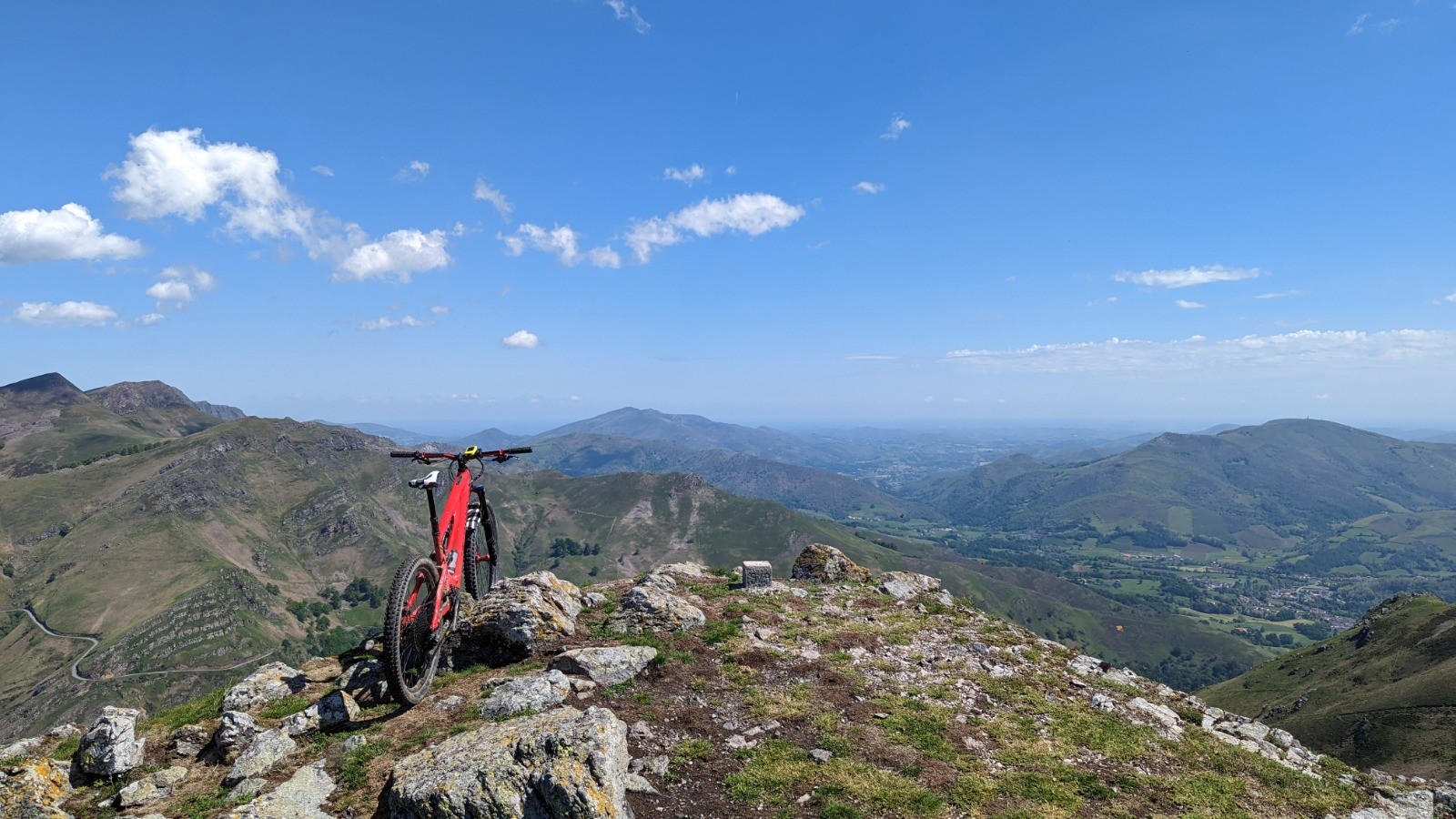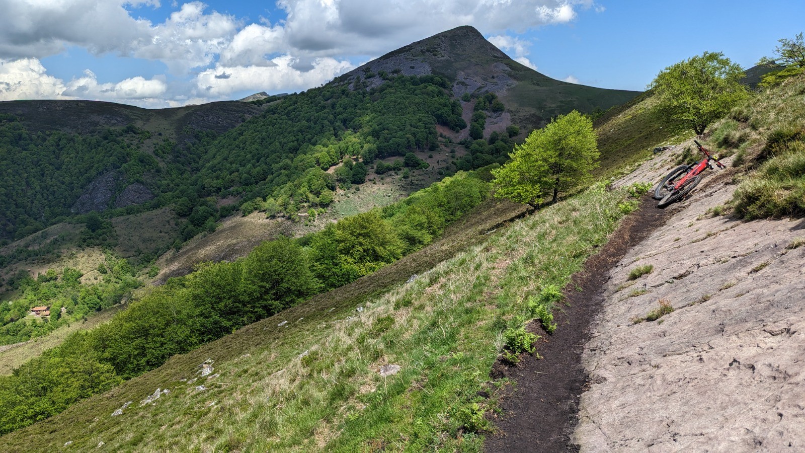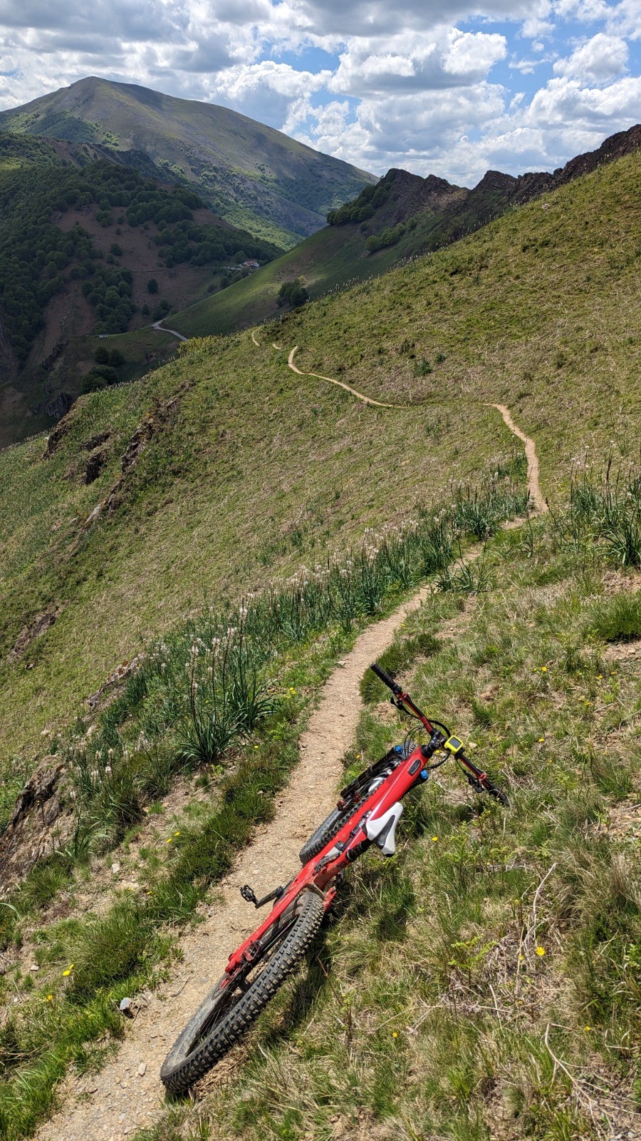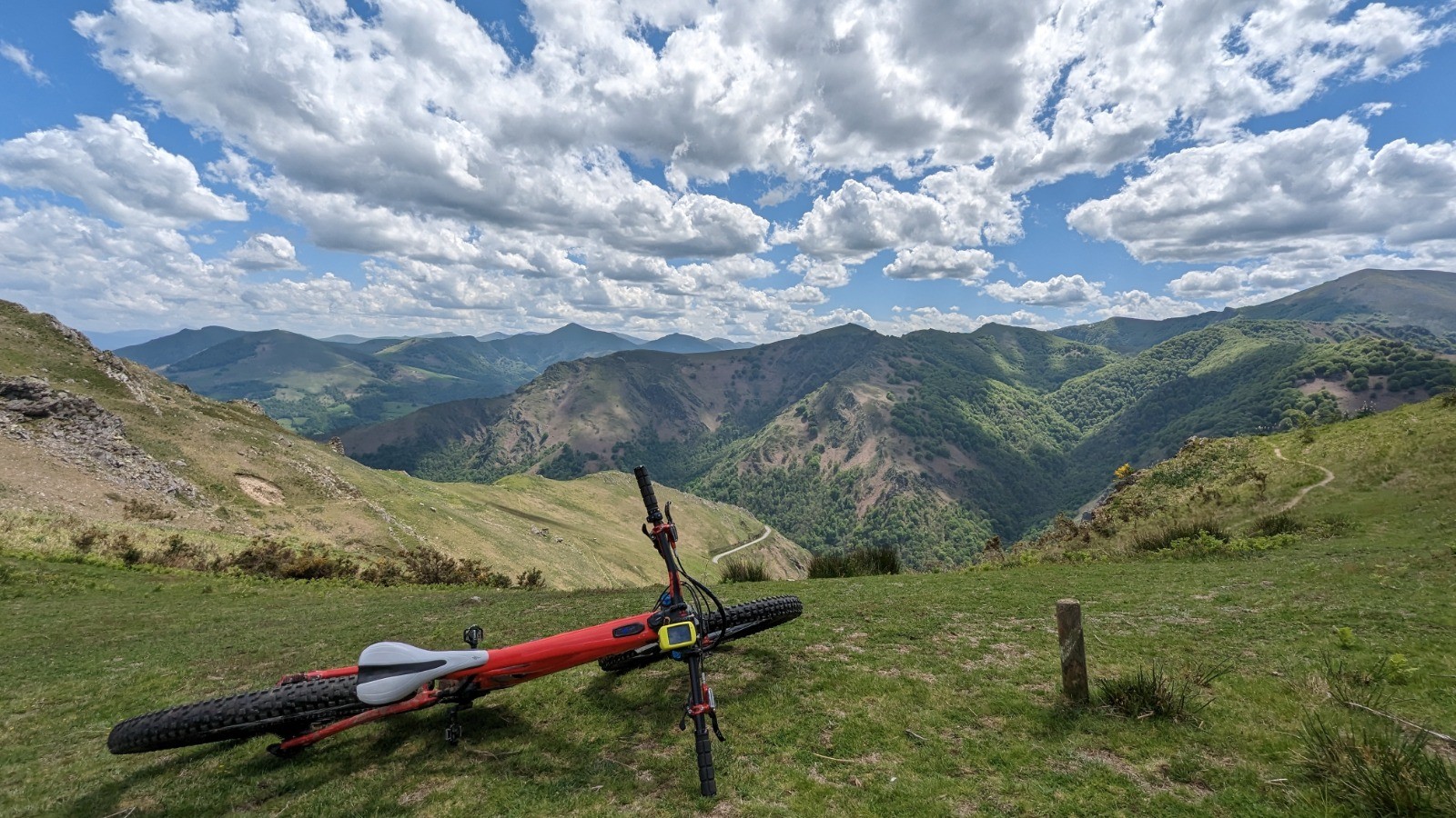 Le retour par le GR10 (grosse erreur mais je voulais essayer) jusqu'à Ttutturruko kaskoa est très éprouvant. La bascule côté français m'engage sur une monotrace, très typée vélo de montagne 🤩, pas plus large que mon boîtier de pédalier, avec des relances, un sol très fuyant, des rochers, du poussage...bref un régal de single 🤩🤩 mais épuisant.