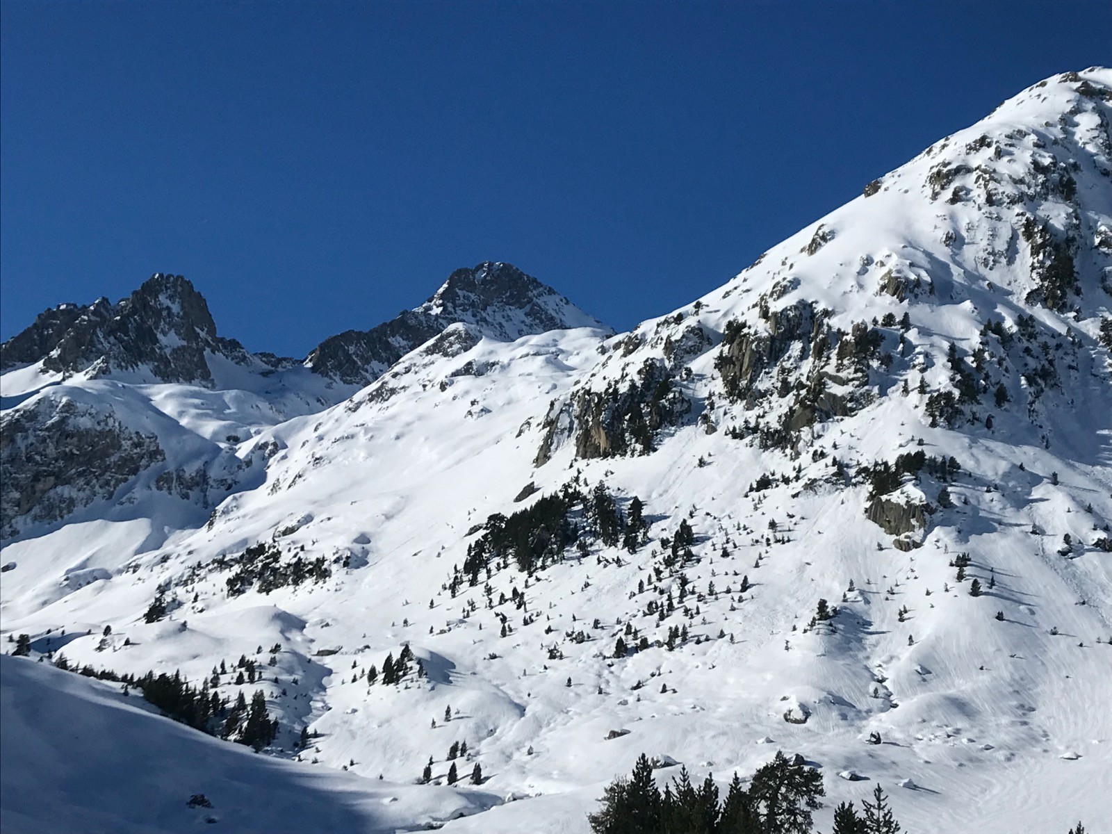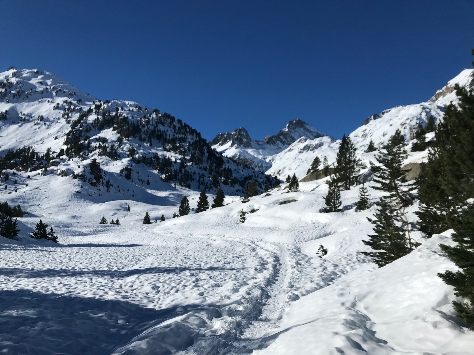 Super journée pour monter voir l'avancement des travaux du refuge. Une neige extra et qui portait , certains sont montés sans les raquettes .Paysage fabuleux: Vignemale et Pic du Clot de la Hount, Pic Né,Grand et Petit Pic d'Arratille, La Tête D'Ours,Le Bernat Barrau,Le Péterneille,Le Pic du Marcadau, La Muga Nord,Le Pic Falisse,La Grande Fache ....et tout ceci sous un ciel sans nuages!!!
