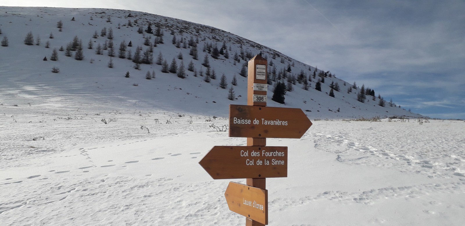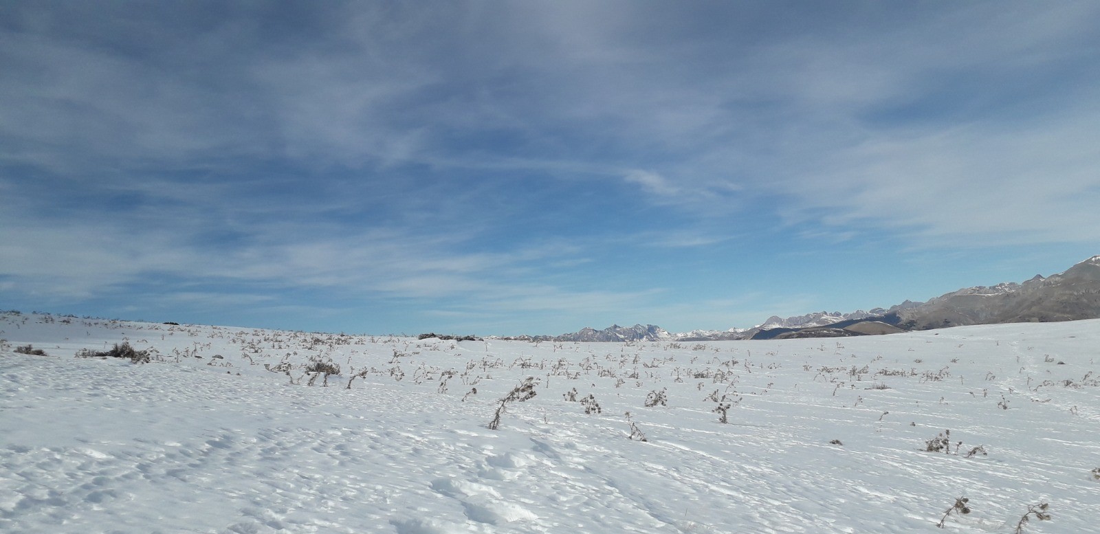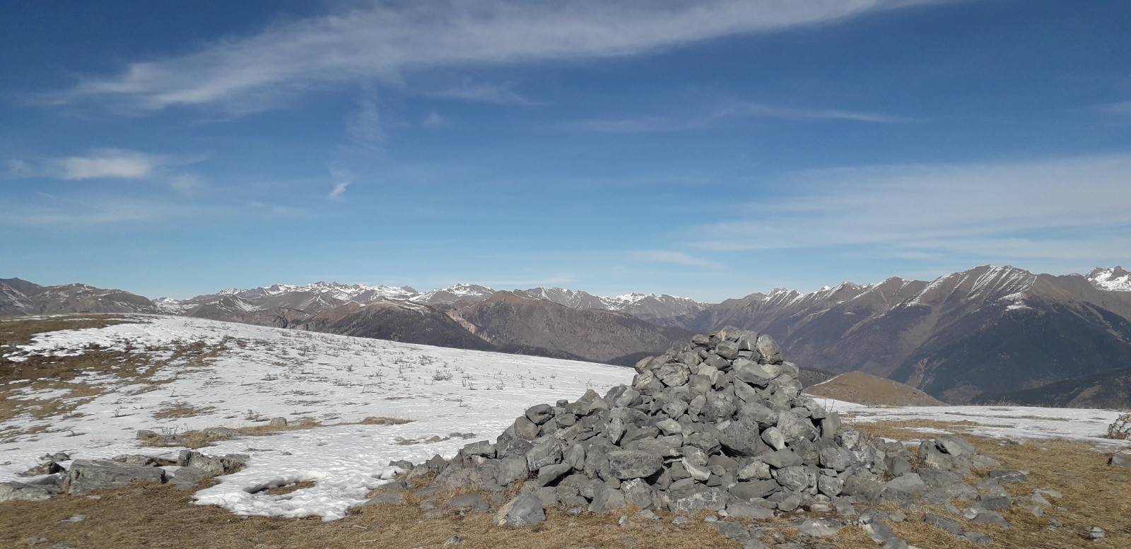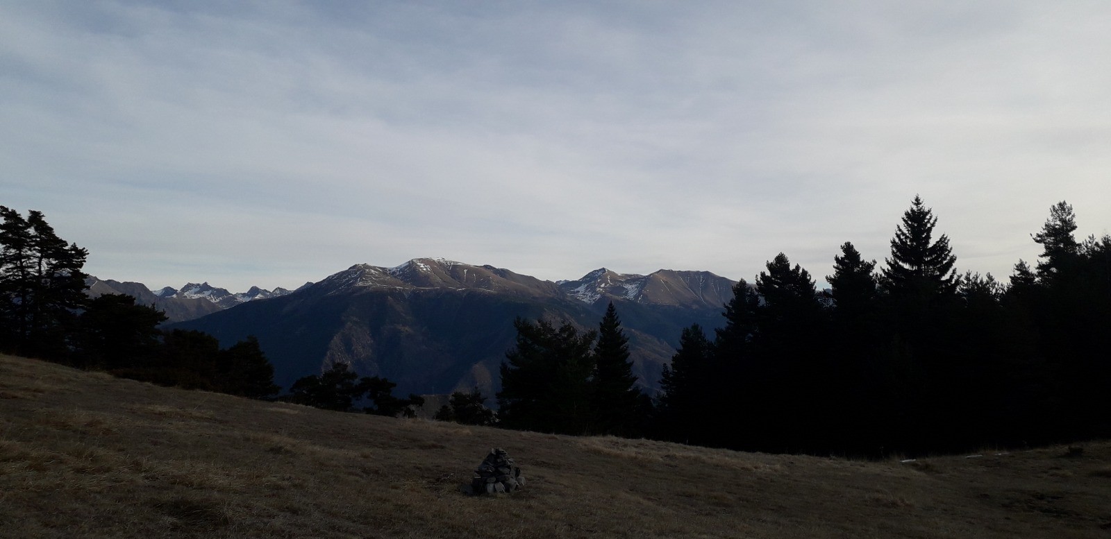 Promenade aisée sans difficulté jusqu'au dôme vallonné (pacage), au départ de la belle aire de pique-nique du col de Sinne, en vis à vis du Brec d'Ilonse.