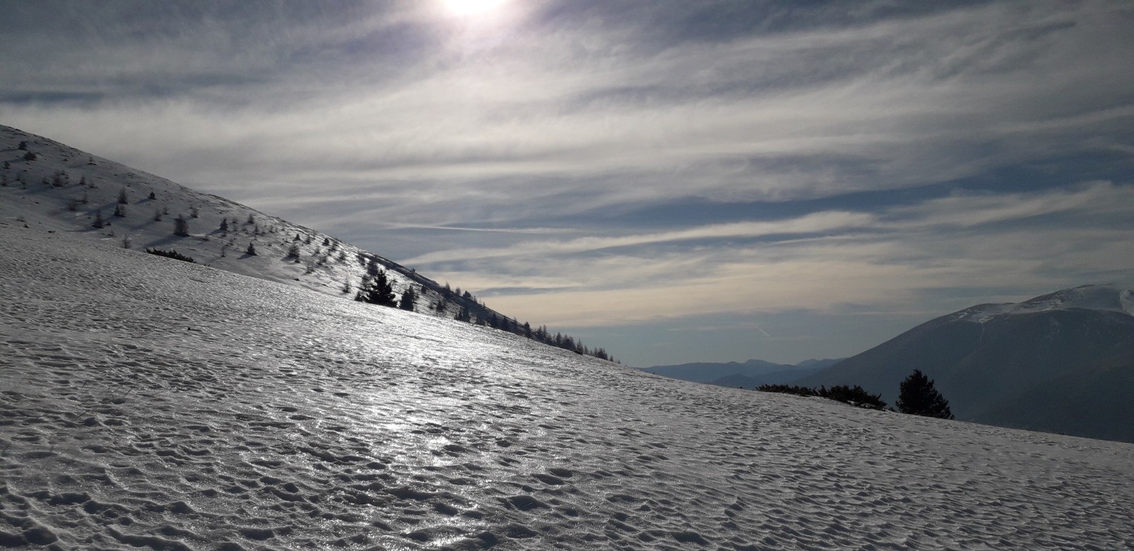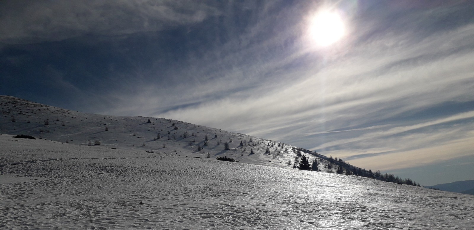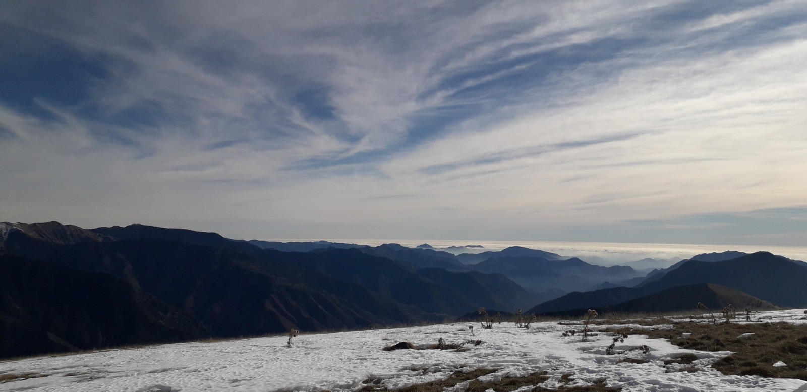 Balade très plaisante réalisée le 27/01/22, qui a tenu ses promesses quant à la diversité des paysages traversés. Débute avec un décors forestier depuis l'aire de pique-nique du beau col de la Sinne jusqu'au col des Fourches et se poursuit en amorçant une montée progressive jusqu'au dôme du Lauvet d'Ionse démuni de végétation. Fait cependant compensé par l'admirable vue offerte depuis le sommet avec une magnifique mer de nuages ce jour-là en direction du littoral. Corse visible depuis le Lauvet. Charme complémentaire en cette période de l'année, l'ascension a été effectuée dès le Km 4 avec des versants enneigés qui ont pimenté agréablement cette sortie. Rando recommandée.