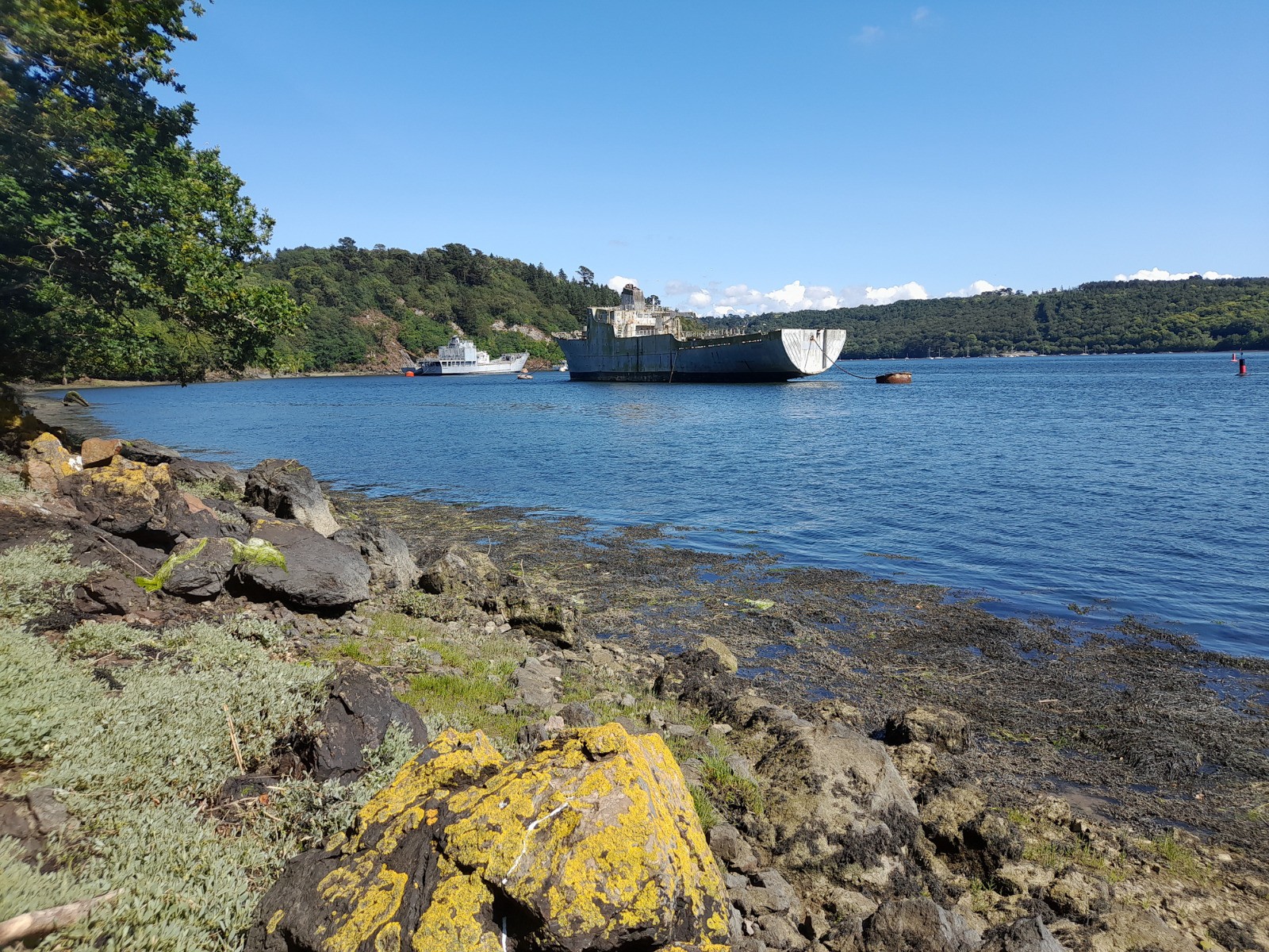 Bonjour, épisode 2, partir de l'abbaye, prendre le chemin à droite, suivre, ou plutôt deviner le sentier de chevreuil qui mène au pied du site. Anecdocte du jour, pose le sac à dos au bord de la plage, reviens 20mn plus tard, le sac commence à tremper. Quelqu'un à déplacé mon sac? Non la marré passe par là, ai fait fissa pour rejoindre le chemin.