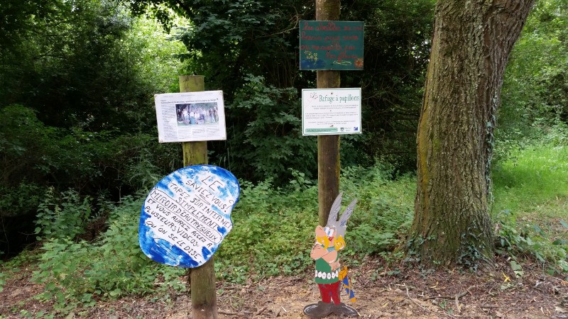 Départ La Clé des Arts , rejoindre le Parc de La Ville Junguenay avec une pose devant la nouvelle volière . Rejoindre la ligne de chemin de fer par la rue René Coty . Continuer , arrêt près du rucher de la ville , aller jusqu'au Miroir d'Eau afin d'admirer la nouvelle terrasse , la table , les blancs , la poule d'eau , les 3 ruches ... poursuivre le long du Bois Gelé , retour le long de la Rue D'Armor et la Clé des Arts