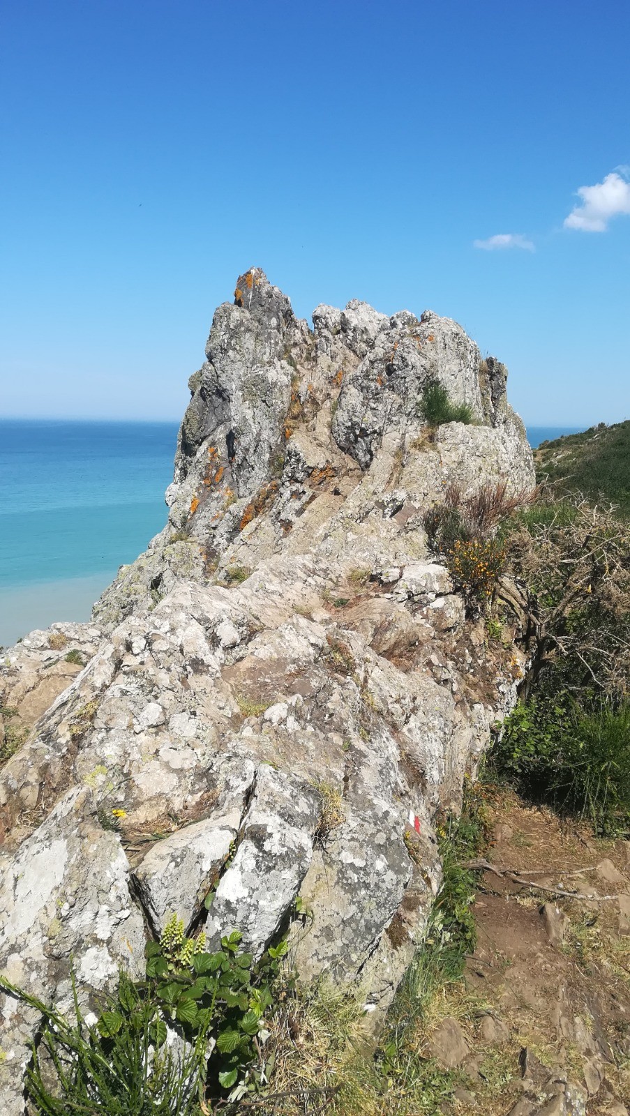Bon, reprenons : après le tour des remparts de Granville qui sont très beaux mais avec un peu de dénivelé pour se mettre en jambe, je suis le long de mer jusqu'à Saint Pair ou je m'arrête pour prendre 2 sandwichs... infâmes ! Devait rester du sable (ou de la terre ?) dans la salade. Bref je pousse jusqu'à Jullouville ou- à force de me renseigner- je trouve ce qui sera ma seule pinte de bière. Puis, c'est le plat de résistance en vue : les falaises de Carolles.... Je longe la mer et go pour la grimpette (et encore des escaliers !). Beaucoup de touristes au fur et à mesure que je me rapproche de la cabane Vauban.. Pause écourtée à cause des insectes... Grrrr ! De toute façon, le sandwich reste immangeable ! Je redescend vers Saint Jean le Thomas en me disant : à boire et à manger !! Et là.. SUNDAY CLOSED (traduction française : le lundi - Monday - TOUT EST FERME). Et ça aller continuer jusqu'à mon arrivée chez l'hôtesse qui aura l'amabilité (moyennant finance) de ma préparer un plat de pâtes qui, comme le chantait notre bon maître Georges, brûlera comme un grand festin (le plat de pâtes, hein ! Pas le sourire ni l'amabilité de l'hôtesse) !