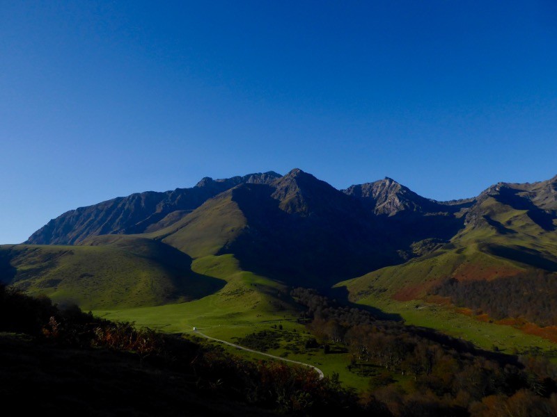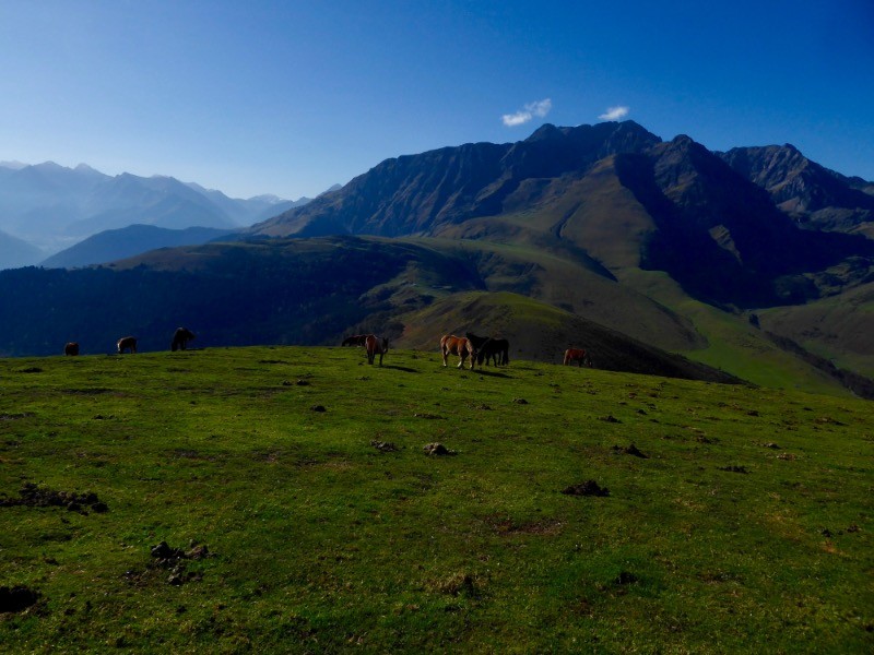 Temps superbe pour une journée automnale.Les couleurs sont magnifiques et la lumière matinale multiplie les teintes. Les animaux ne sont pas tous redescendus dans la vallée et restent encore en altitude . Depuis le plu del Naou vue incroyablement nette sur le Pic du Midi de Bigorre , le Soum de la Pène, le Coste Oueillère , le Soum de Marianette, le Maufaucon, l'Arbizon bien sûr le maître des lieux, la plaine de Tarbes, Arreau , Le Signal et les Crêtes du Bassias,le Montious, le Pic du Lion , le Sommet de Pouey Louby, Peyragudes, en fond la Maladeta,l'Aneto dans la brume ....un régal!!!