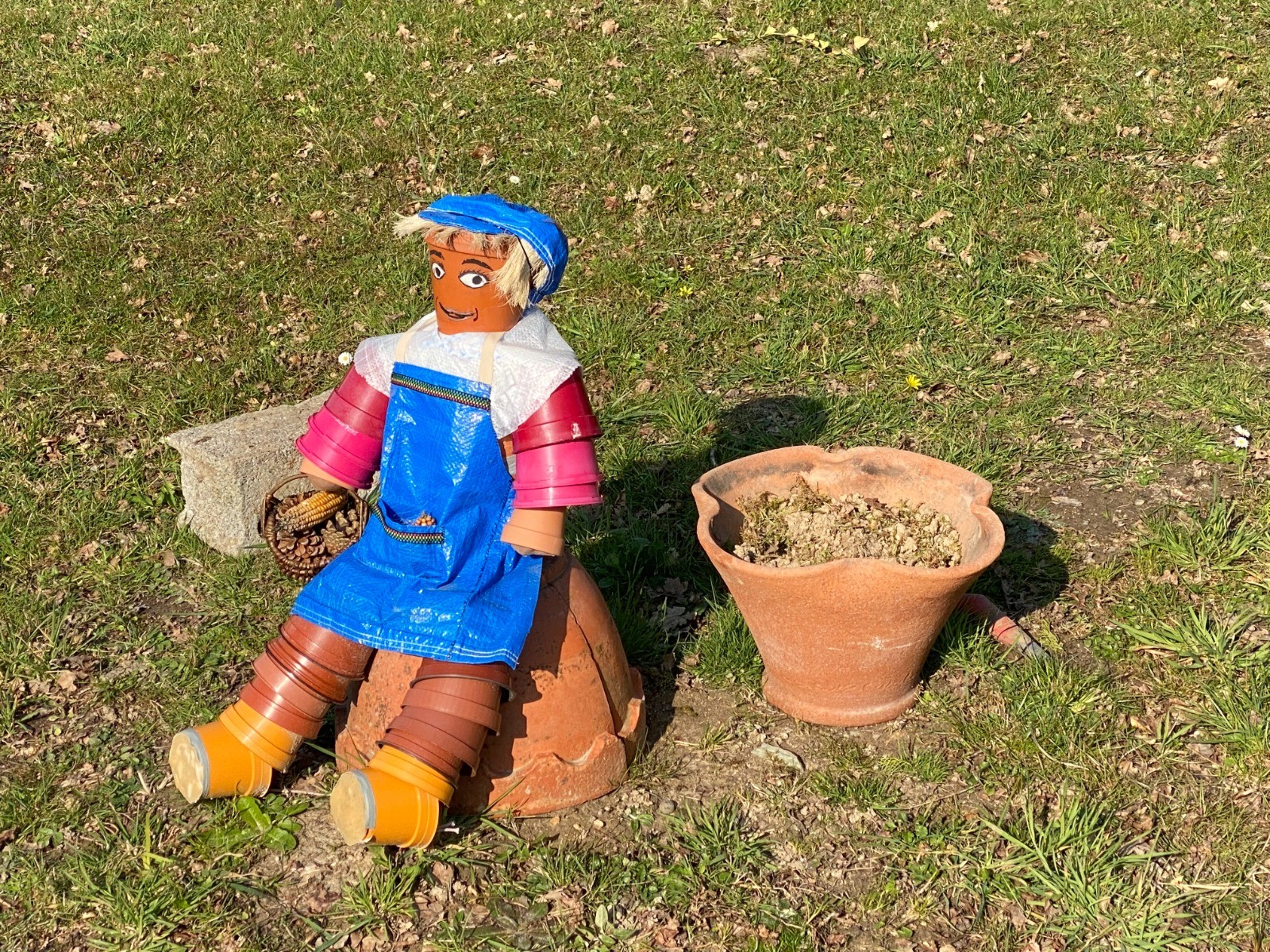 En arrivant au pied du village de Dréfféac une charmante dame est en train de bichonner son jardin et est heureuse de nous présenter son oeuvre "Papy rock" ( voir photo no 8 ) fabriquée avec des pots de fleurs.