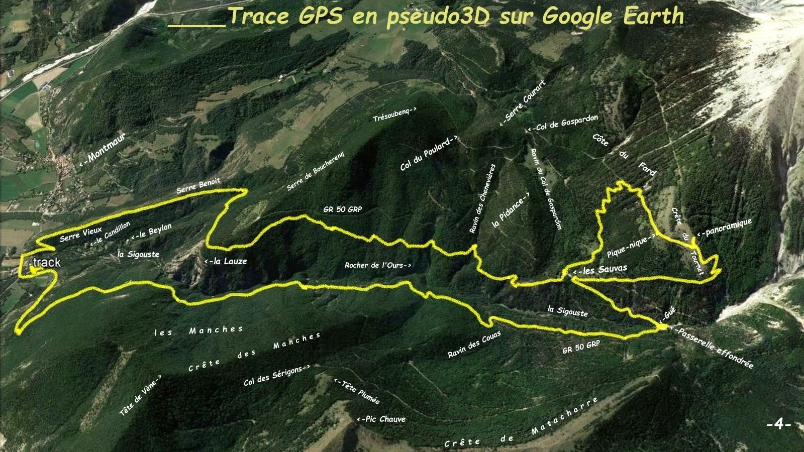et Vieux > rester sur le sentier en crête de ce dernier, traverser son croisement avec celui de Montmaur à le