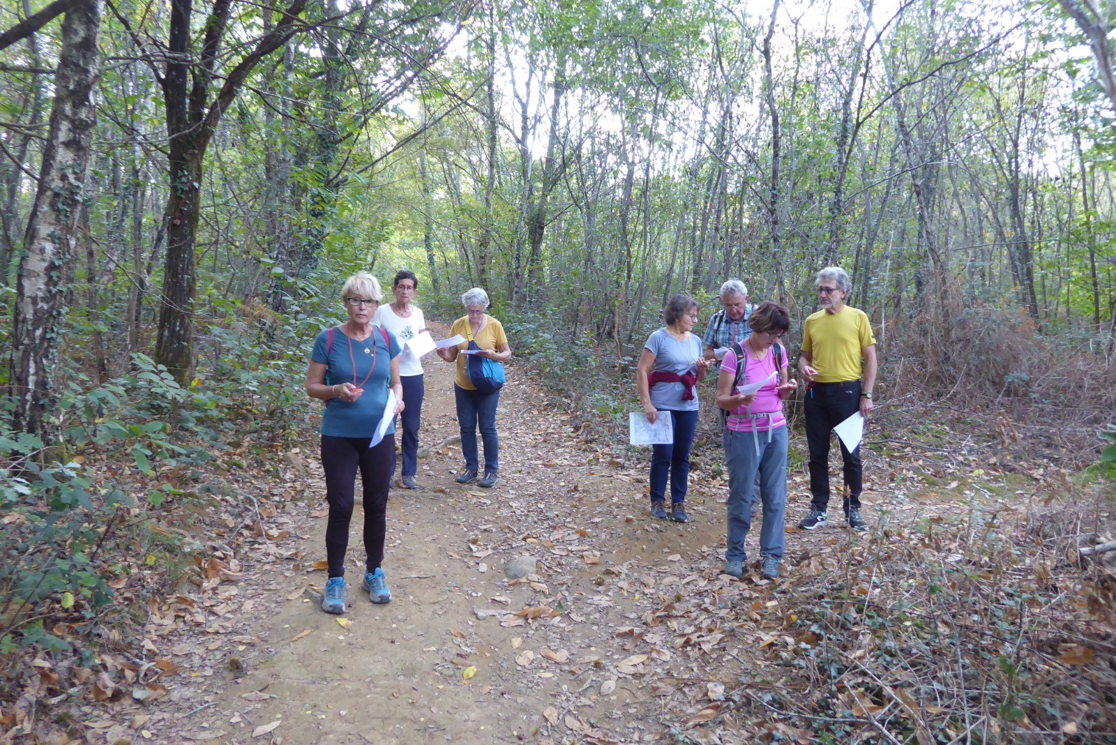 Très belle journée ensoleillée pour cette formation. Deux bonnes heures …. sans pause, au menu: cartographie, lecture de carte et maniement de la boussole. Les exercices sur papier nous ont familiarisé avec la carte et la connaissance de ses informations diverses et variées. Calcul de l’azimut sur la carte et report sur le terrain etc etc … Un petit parcours autour d’Odos a permis a chaque participant de prendre en charge la direction du groupe en tant que leader et pour un tronçon donné en utilisant seulement azimut et distance, et bien entendu une feuille de route!! Et tout ceci dans une belle ambiance !