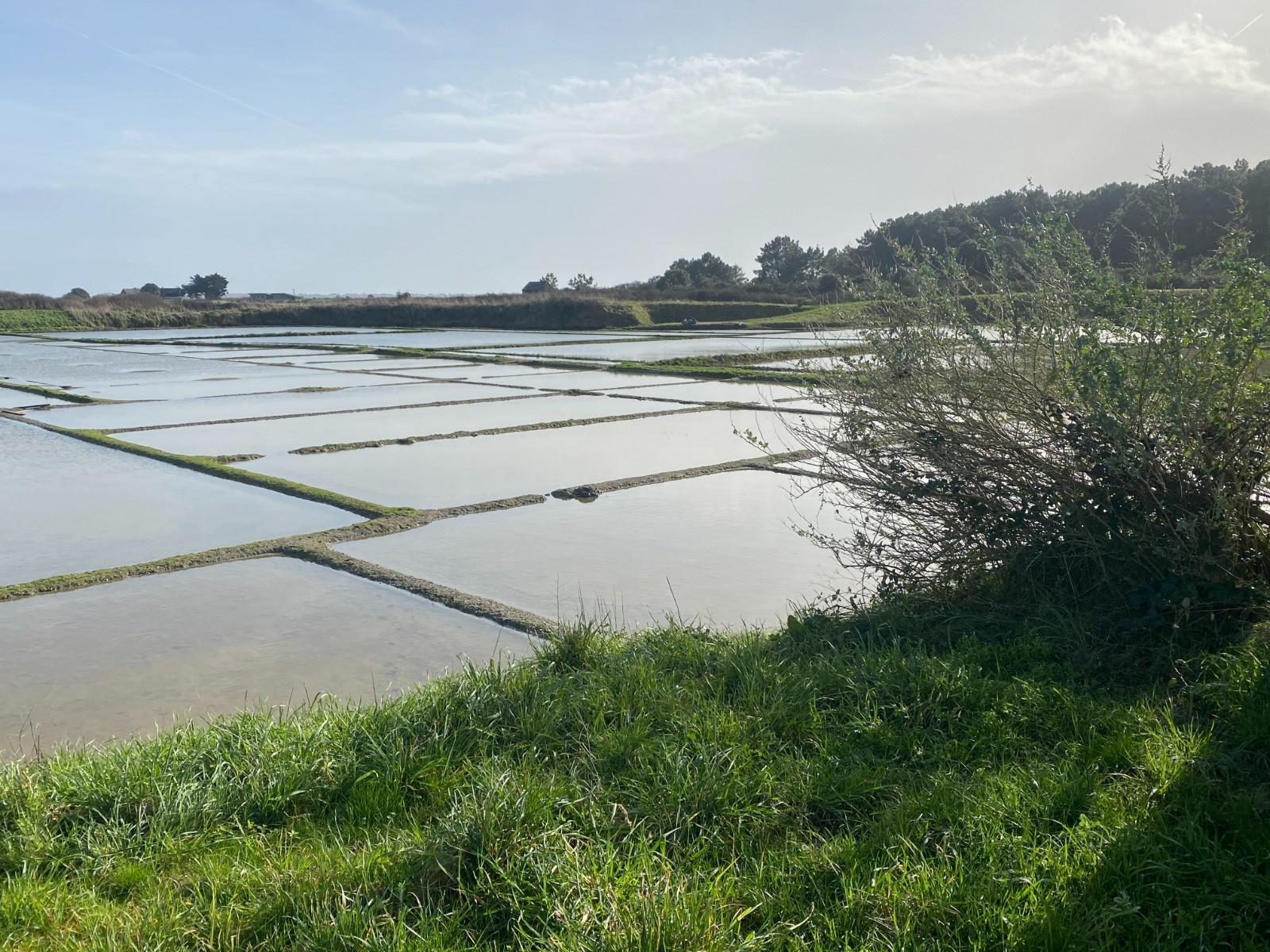 La mer s’efface et laisse place à une atmosphère plus paisible : celle des marais salants de Guérande.