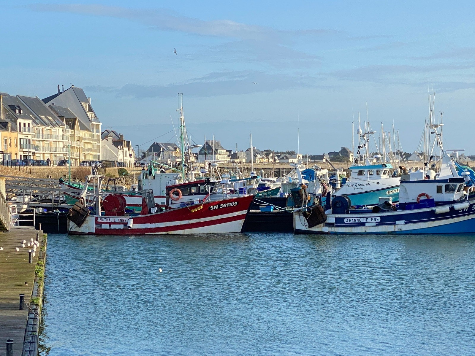À quai, les filets encore humides, les casiers empilés et les cris des mouettes composent une ambiance maritime très forte.