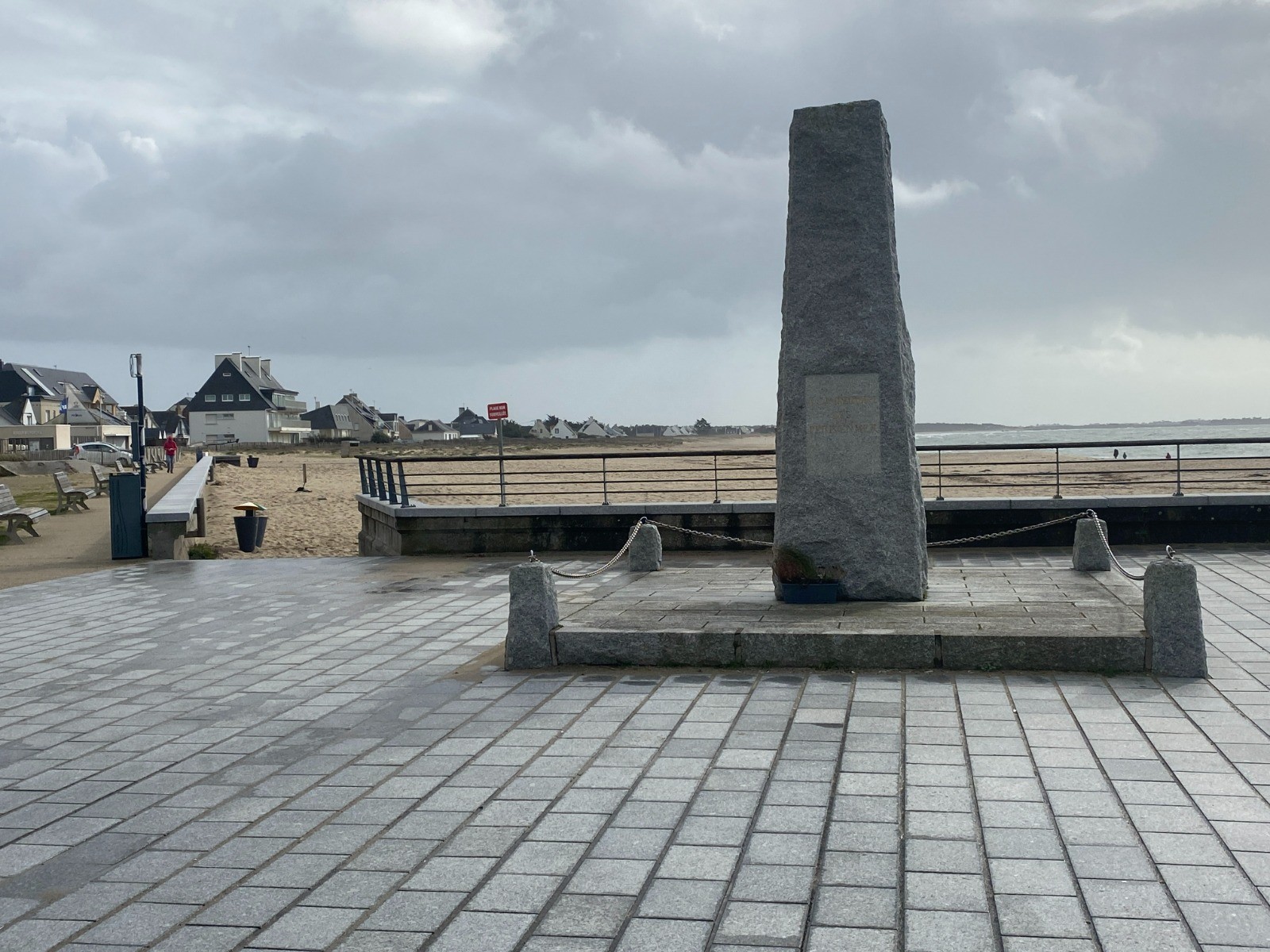 1.5 kms le long de la plage où une dune a vu le jour et vient caresser les nombreuses demeures vides .