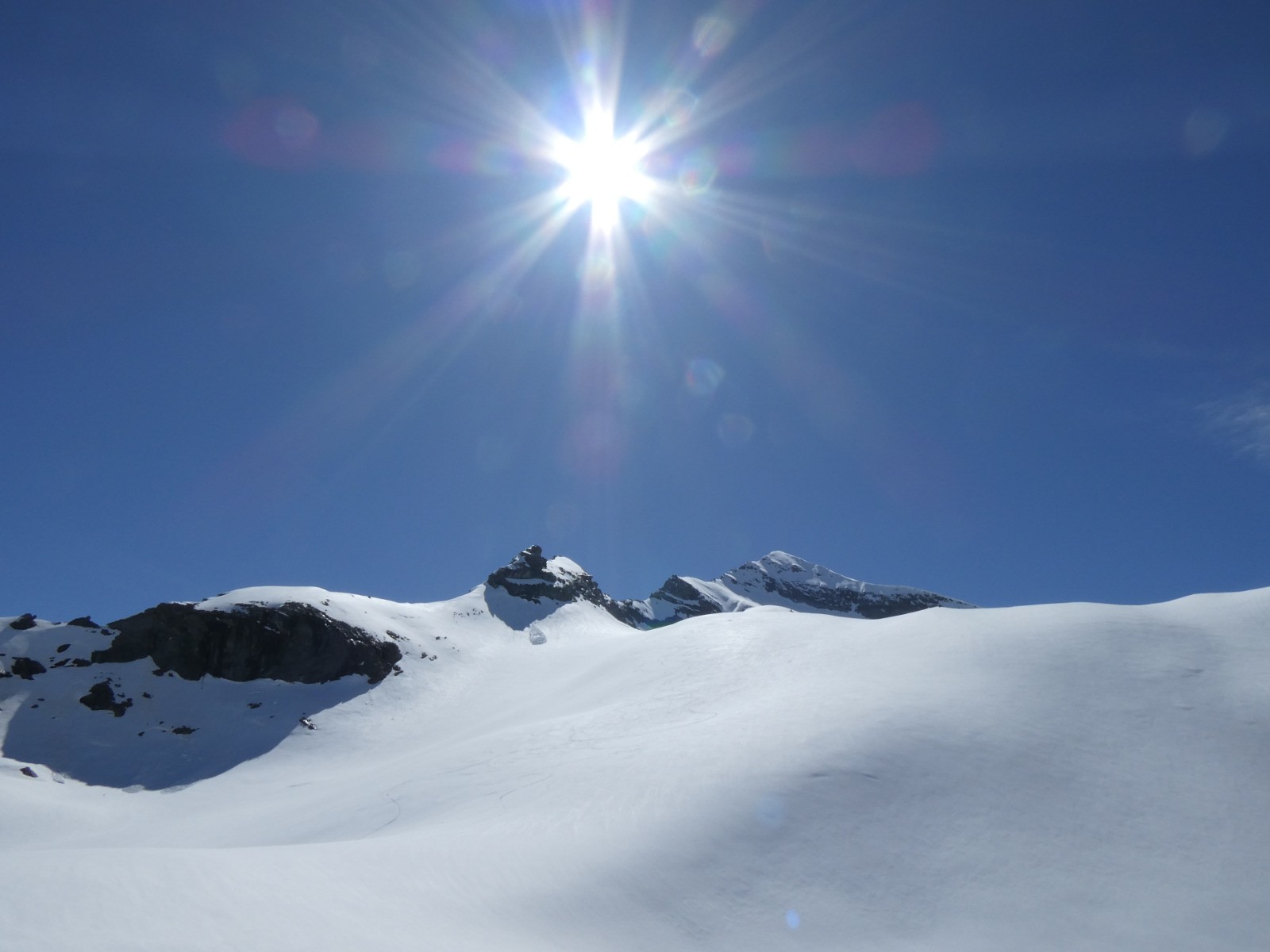 Le grand beau temps chaud nous a accompagné toute cette journée, et malgré un regel faible et une neige pas tant simple à skier ce fut une belle journée.