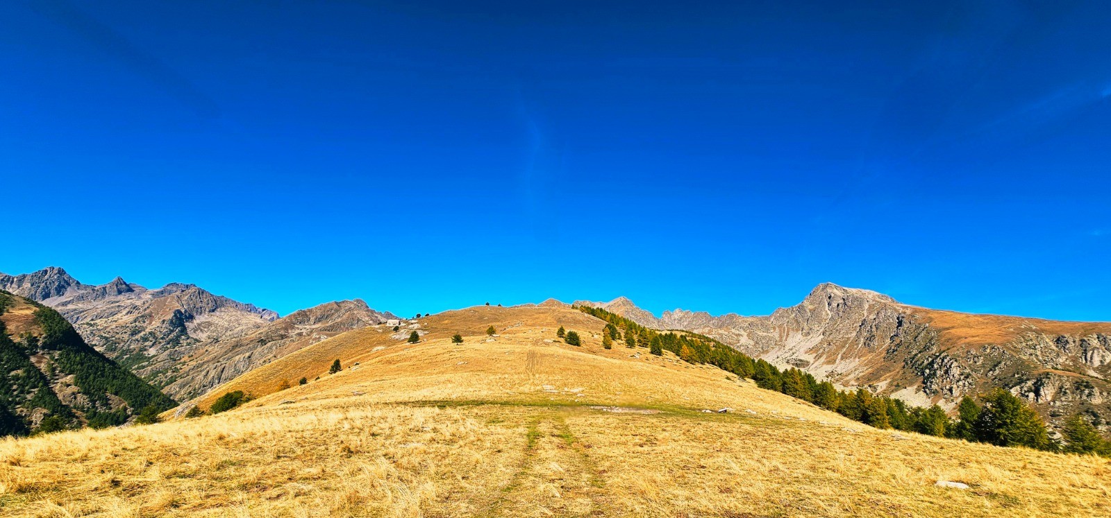 Plateau du Sabion avec barres rocheuses dans l'axe, délimitant la frontière franco-italienne