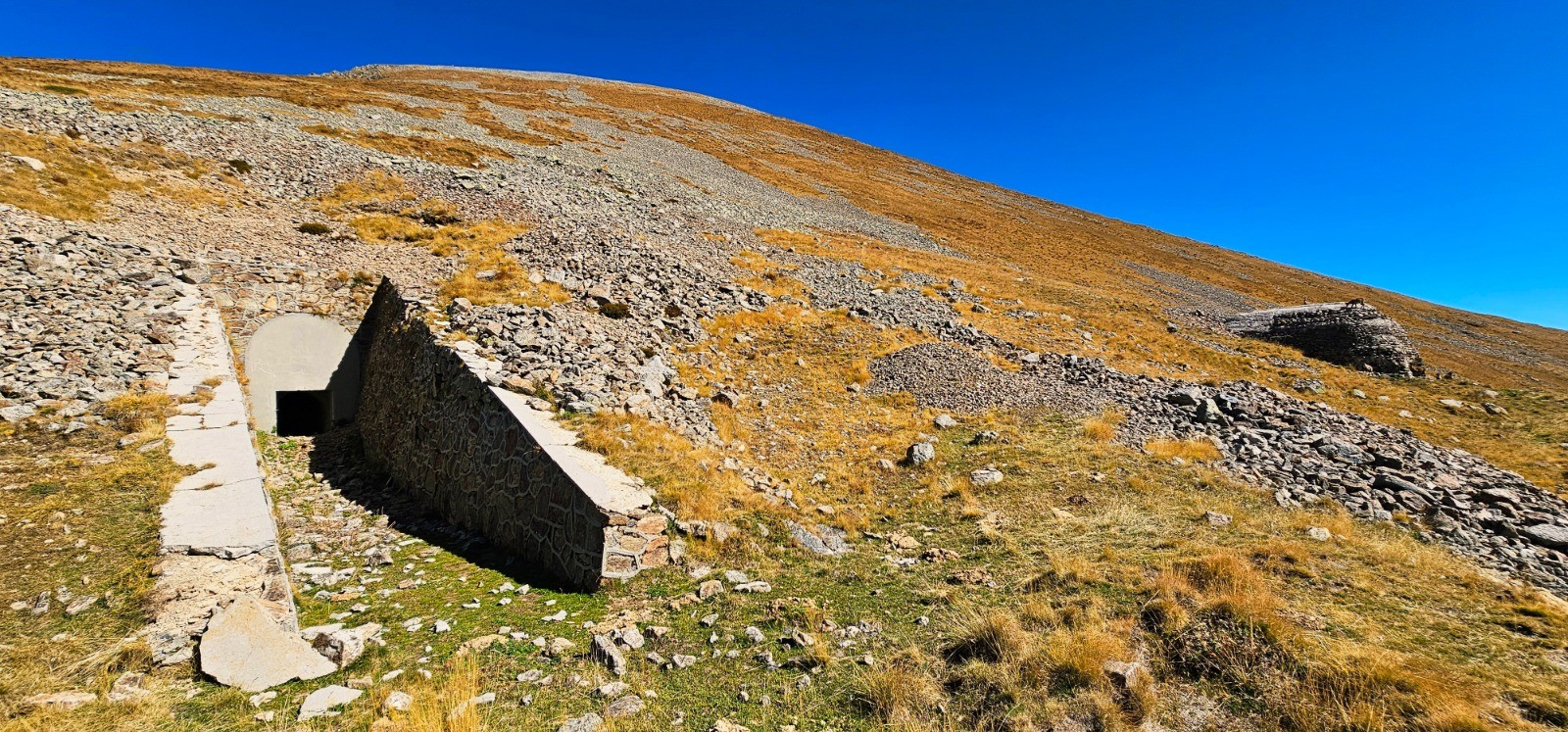 Entrée blockhaus sous col Est du Sabion (galerie en partie obstruée) et bloc défensif à droite