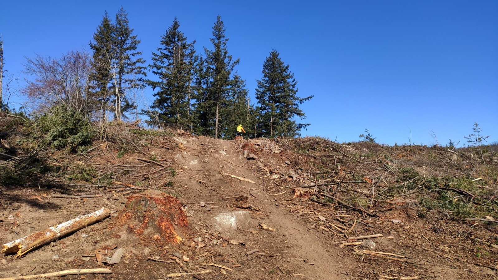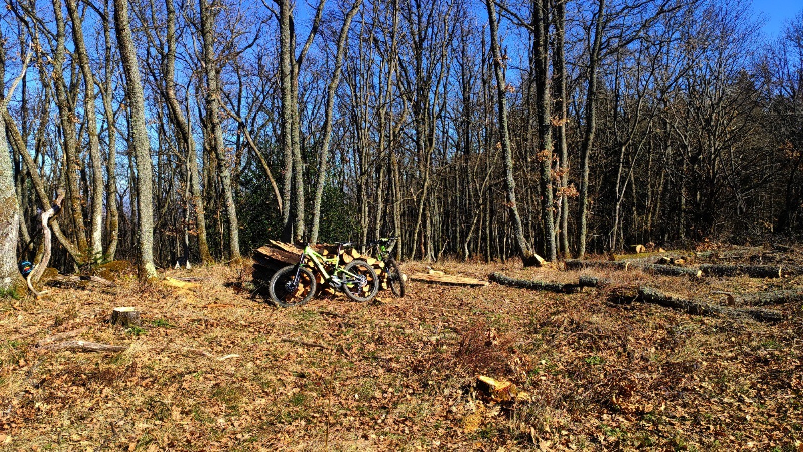 Abrité dans les bois pour éviter la bise frisquette, Vite réchauffés avec des singles DH pris à l'envers, d'autres dans le bon sens, et même un peu de jardinage :-) Un viron avec des passages techniques.